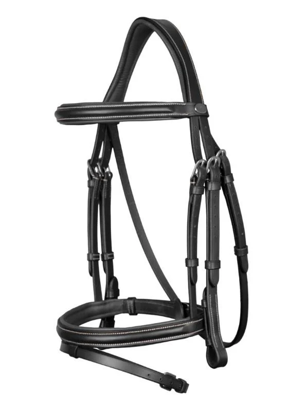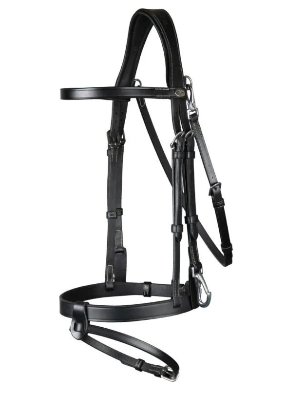 DY’ON FLAT LEATHER BRIDLE WITH SNAP HOOKS WORKING BY D’YON firmato DY’ON, pensato per l’equitazione di qualità e rifinito con cura artigianale. La variante in nero valorizza il profilo dell’insieme con un’eleganza discreta. Appartiene alla Working Collection, una linea robusta e affidabile pensata per l’allenamento quotidiano, ideale quando servono resistenza e praticità senza rinunciare al comfort del cavallo. Pensato per briglie, si integra facilmente nel set di finimenti offrendo un equilibrio naturale tra controllo e sensibilità .