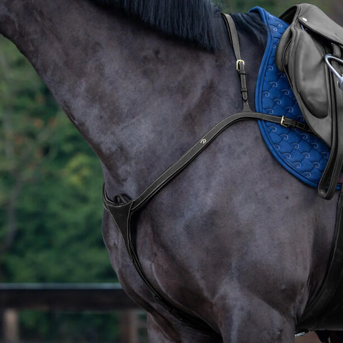 DY’ON PETTORALE IN CUOIO A Y CON PONTE LUNGO CLASSIC COLLECTION firmato DY’ON, pensato per l’equitazione di qualità e rifinito con cura artigianale. La variante in nero valorizza il profilo dell’insieme con un’eleganza discreta. Pensato per pettorali, si integra facilmente nel set di finimenti offrendo un equilibrio naturale tra controllo e sensibilità.