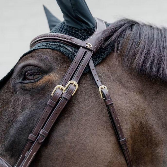 DY’ON PLAITED FLASH NOSEBAND BRIDLE D COLLECTION firmato DY’ON, pensato per l’equitazione di qualità e rifinito con cura artigianale. La variante in marrone valorizza il profilo dell’insieme con un’eleganza discreta. Fa parte della D Collection, dove l’estetica classica incontra la funzionalità moderna, per un look raffinato e sempre attuale. Pensato per testiere, si integra facilmente nel set di finimenti offrendo un equilibrio naturale tra controllo e sensibilità .