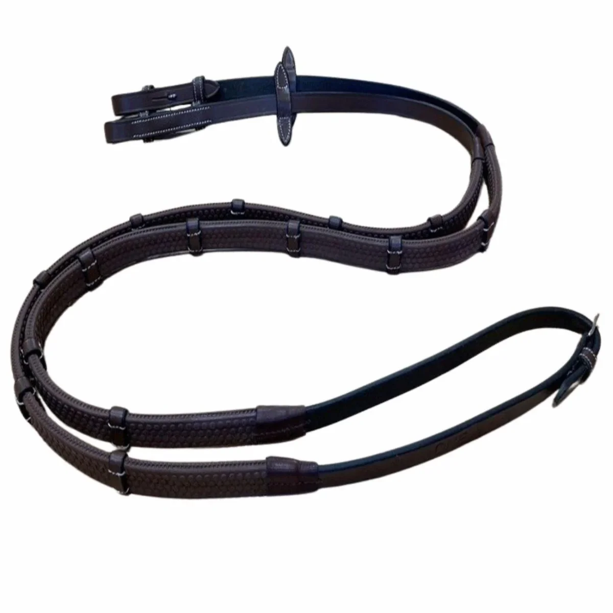 DY’ON REDINI IN GOMMA 1/2 WORKING COLLECTION firmato DY’ON, pensato per l’equitazione di qualità e rifinito con cura artigianale. La variante in marrone valorizza il profilo dell’insieme con un’eleganza discreta. Appartiene alla Working Collection, una linea robusta e affidabile pensata per l’allenamento quotidiano, ideale quando servono resistenza e praticità senza rinunciare al comfort del cavallo. Pensato per redini, si integra facilmente nel set di finimenti offrendo un equilibrio naturale tra controllo e sensibilità .