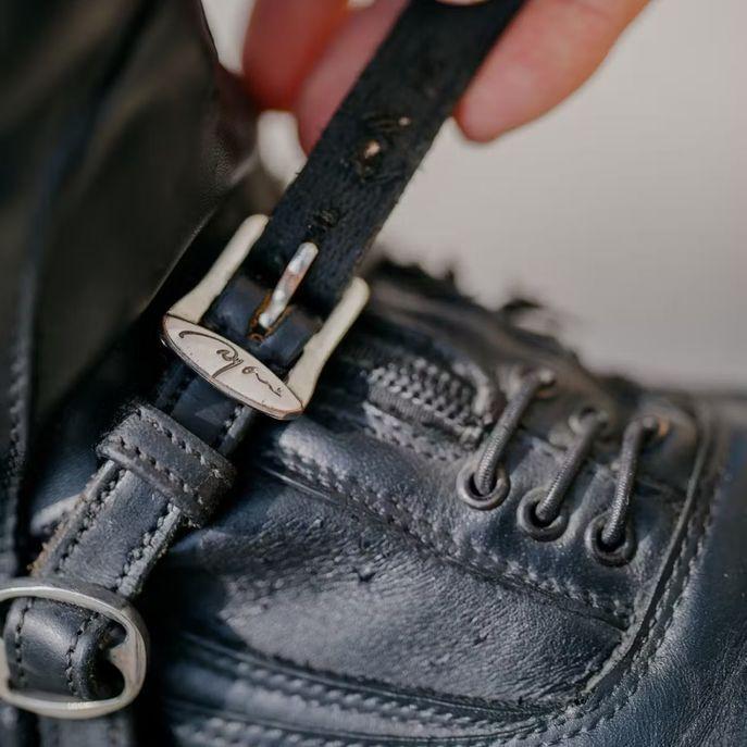 DY’ON SPURS STRAPS DY’ON firmato DY’ON, pensato per l’equitazione di qualità e rifinito con cura artigianale. La variante in nero valorizza il profilo dell’insieme con un’eleganza discreta. Pensato per speroni, si integra facilmente nel set di finimenti offrendo un equilibrio naturale tra controllo e sensibilità .