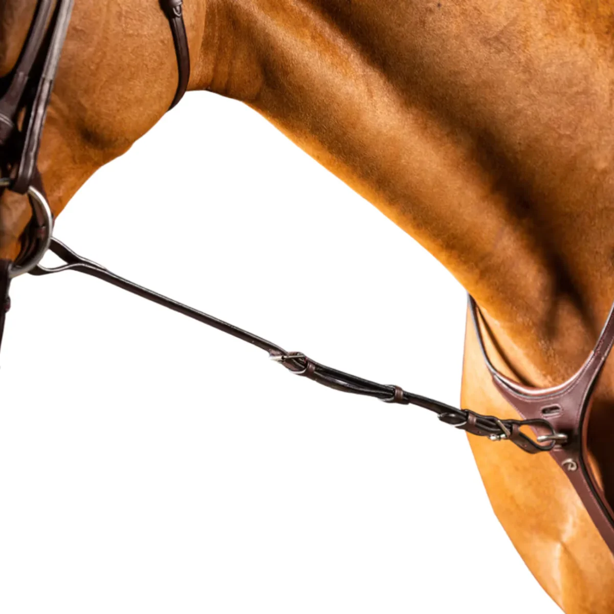 DY’ON STANDING MARTINGALE ATTACHMENT NEW ENGLISH COLLECTION firmato DY’ON, pensato per l’equitazione di qualità e rifinito con cura artigianale. La variante in marrone valorizza il profilo dell’insieme con un’eleganza discreta. Fa parte della New English Collection, riconoscibile per le finiture sobrie e pulite: uno stile essenziale che privilegia comodità e discrezione in sella. Pensato per martingale e forchette, si integra facilmente nel set di finimenti offrendo un equilibrio naturale tra controllo e sensibilità .