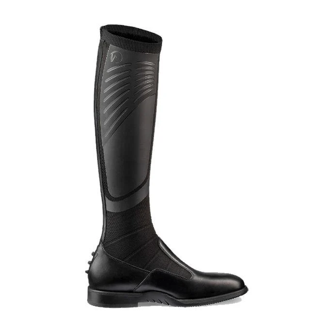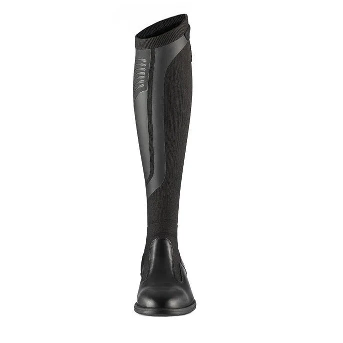 Stivale alto senza chiusure in innovativa maglia tecnica compressiva: aderisce come un calzino, sostiene la gamba e massimizza il contatto con il cavallo.