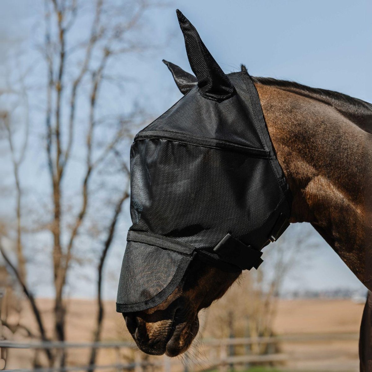 EQUITHEME FLYMASK è la cuffia da equitazione pensata per cavalli che necessitano di maggiore concentrazione in maneggio e in gara. Le orecchie imbottite attenuano i rumori improvvisi senza limitare la mobilità . La costruzione aderente evita sfregamenti sotto la testiera e il colore black completa un look pulito.