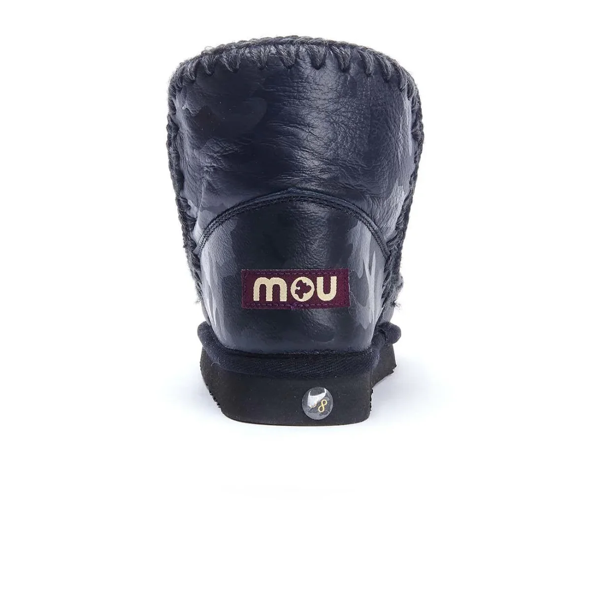 Stivaletto DONNA – Modello: ESKIMO IN PELLE CAMOUFLAGE – Colore: BLACK Stivaletto basso in morbida pelle con stampa camouflage e cuciture a contrasto. Codice produttore: MUFW101001C