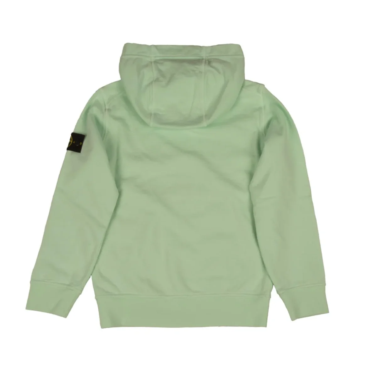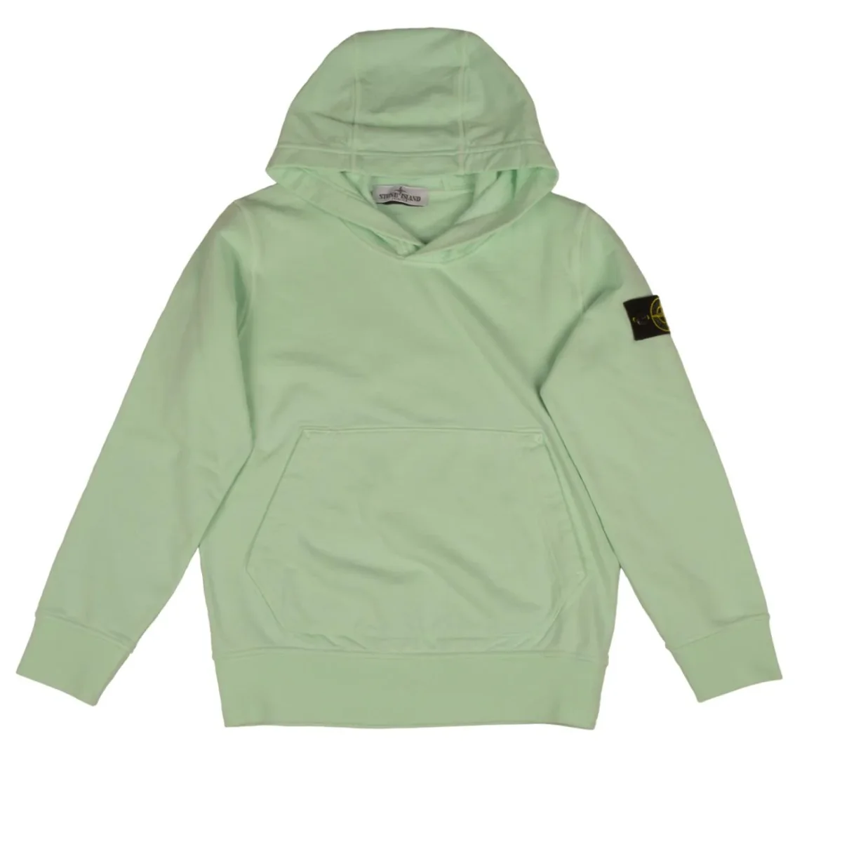 Felpa KIDS – Modello. FELPA LOGATA – Colore: AQUA Felpa con cappuccio realizzata in felpa di cotone con scollo a costine. Presenta badge Stone Island sulla manica sinistra, polsi e fondo a costine e tascone a marsupio sul davanti. COMPOSIZIONE: 100% cotone Codice produttore: 781661640
