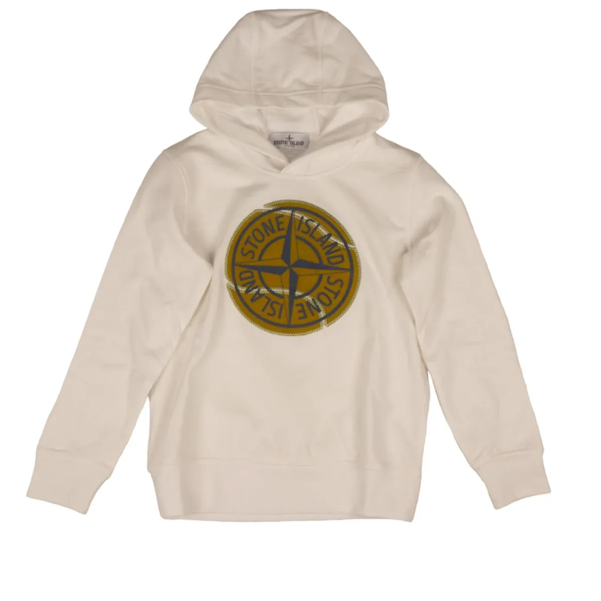 Felpa BAMBINO – Modello: LOGO – Colore: WHITE Felpa realizzata interamente in cotone, con cappuccio e maniche lunghe, polsini elasticizzati e maxi stampa logo rosa dei venti STONE ISLAND sul davanti. COMPOSIZIONE: 100% Cotone Codice produttore: 781662875