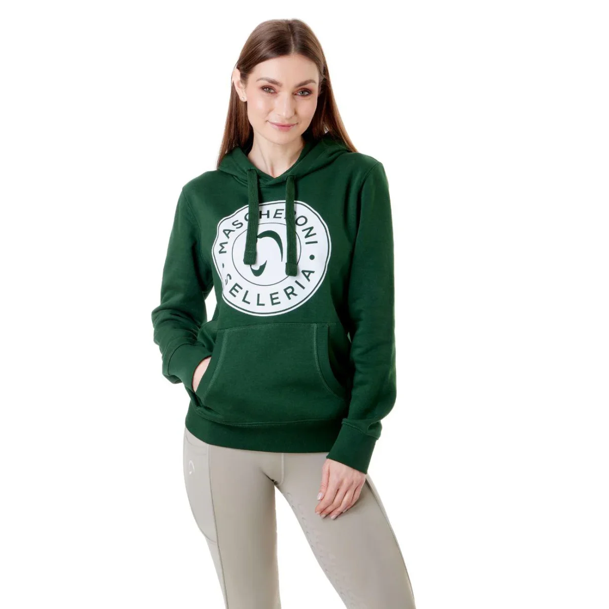 Questa felpa con cappuccio, dal taglio unisex, unisce comfort e carattere grazie al maxi logo frontale Mascheroni Selleria. Realizzata in morbido cotone, è ideale da indossare in scuderia o nel tempo libero.