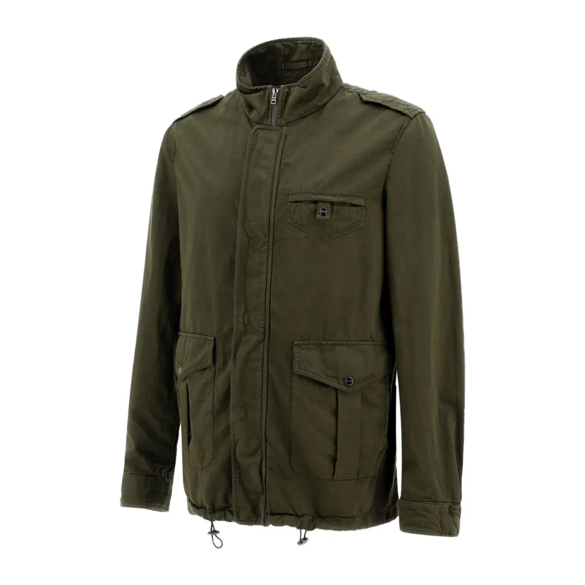Field Jacket UOMO – Modello: FIELD JACKET GARMENT DYED – Colore: MILITARE Field Jacket con collo alto dalla vestibilità relaxed realizzata in misto cotone e lino. Possiede vestibilità slim e trattamento idrorepellente per il massimo comfort. Possiede chiusura coperta con zip e bottoni automatici, taschino a filetto con bottone, tasche con patta, coulisse al fondo e polsini regolabili. COMPOSIZIONE: 73% Cotone, 27% Lino