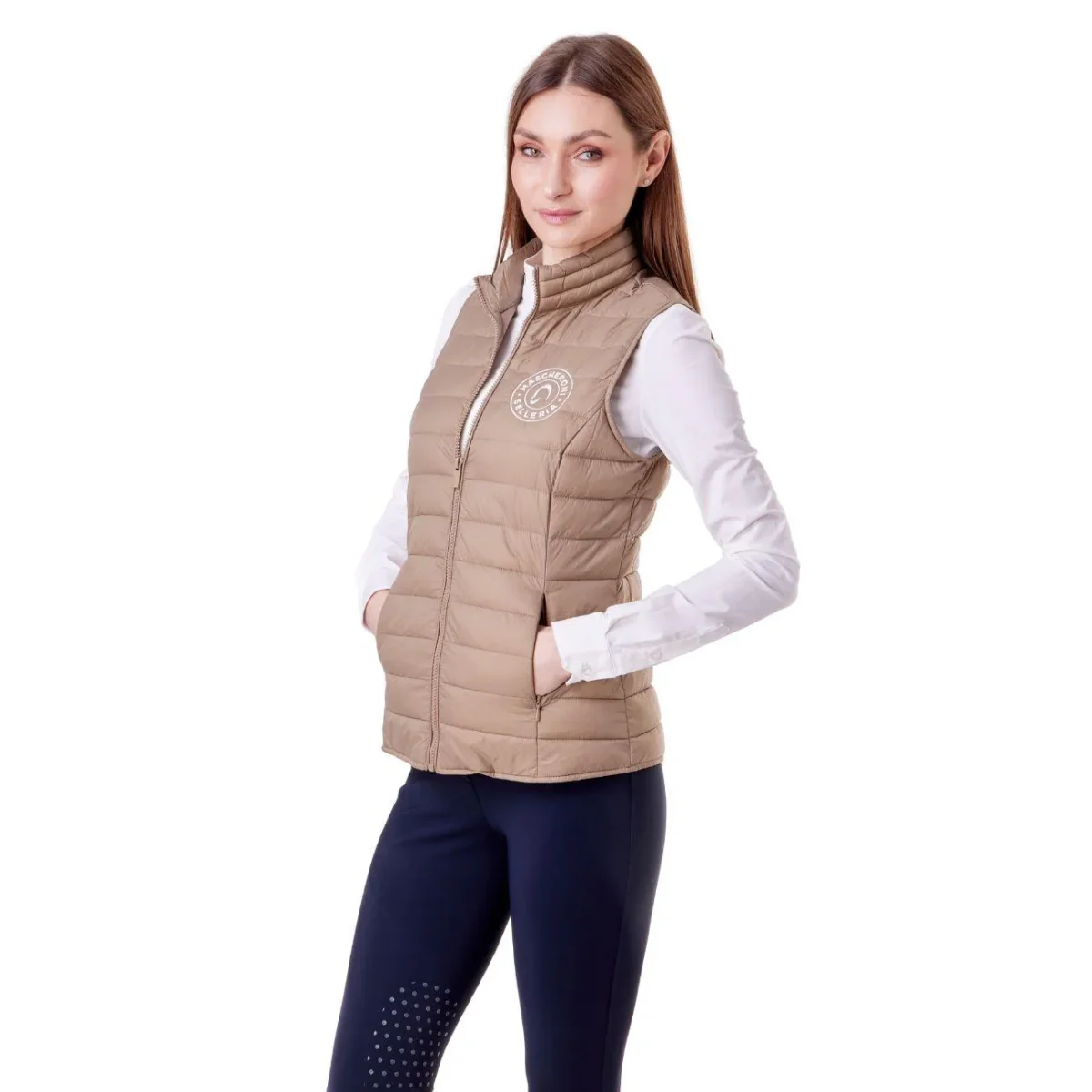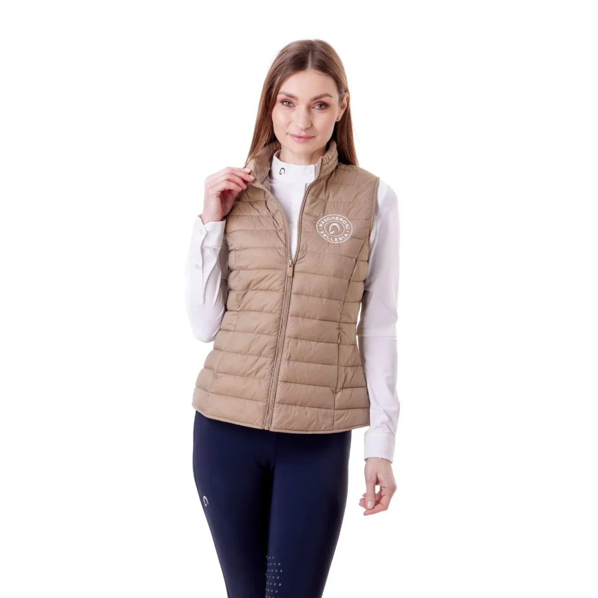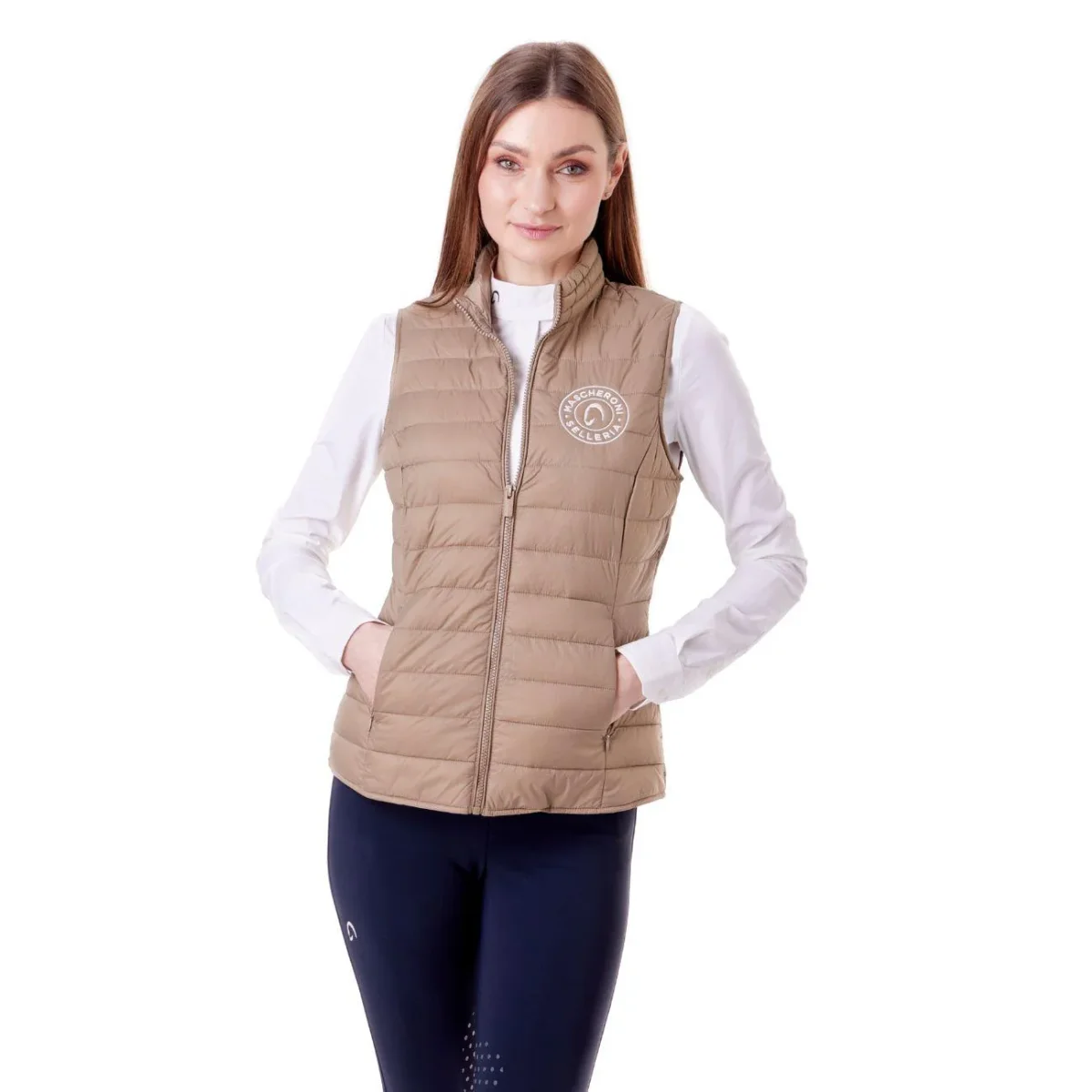 Gilet imbottito da donna Mascheroni Selleria, caratterizzato da un design trapuntato orizzontale. Dotato di chiusura full-zip e collo alto protettivo, cerniere laterali e rifinito dal logo circolare ricamato sul petto.
