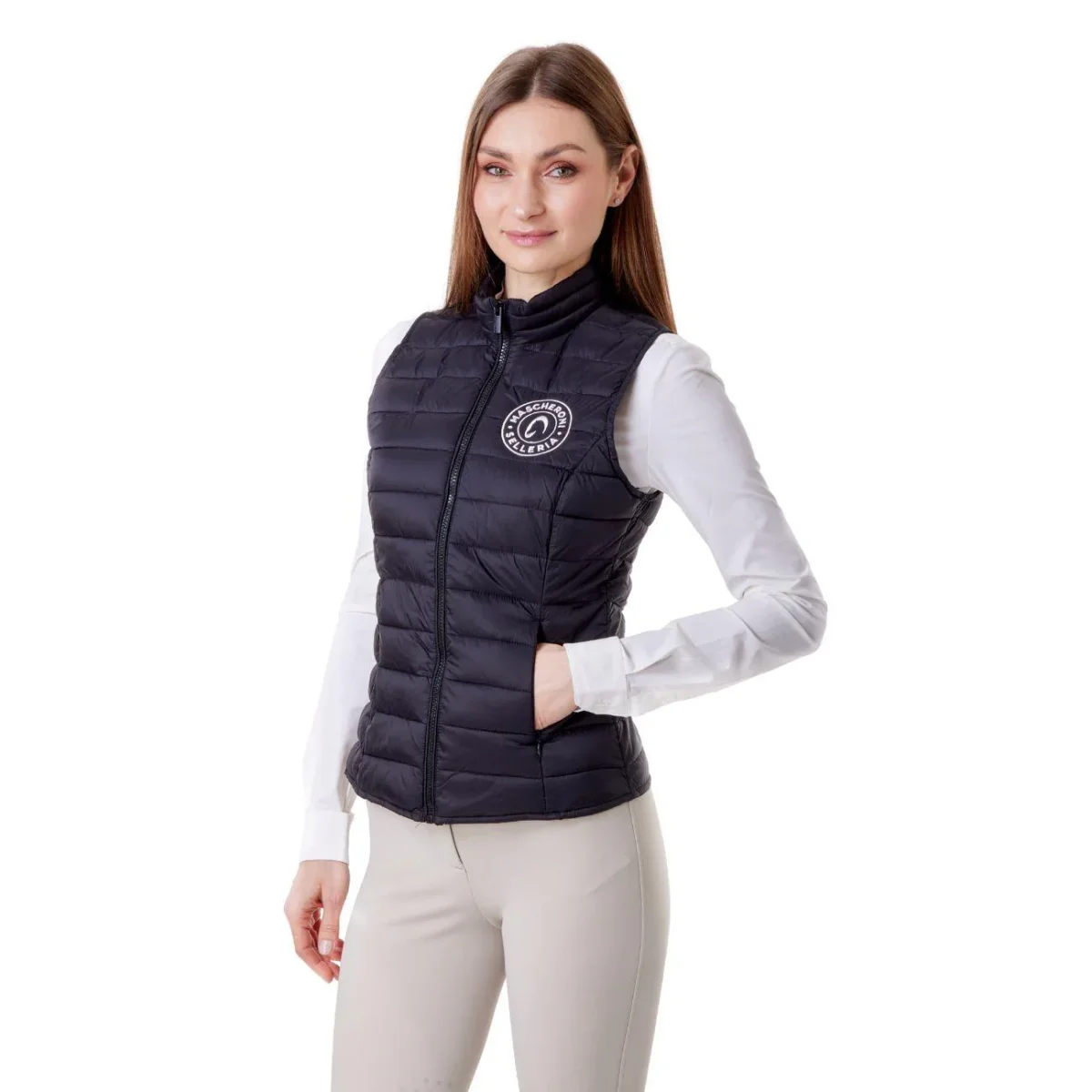 Gilet imbottito da donna Mascheroni Selleria, caratterizzato da un design trapuntato orizzontale. Dotato di chiusura full-zip e collo alto protettivo, cerniere laterali e rifinito dal logo circolare ricamato sul petto.