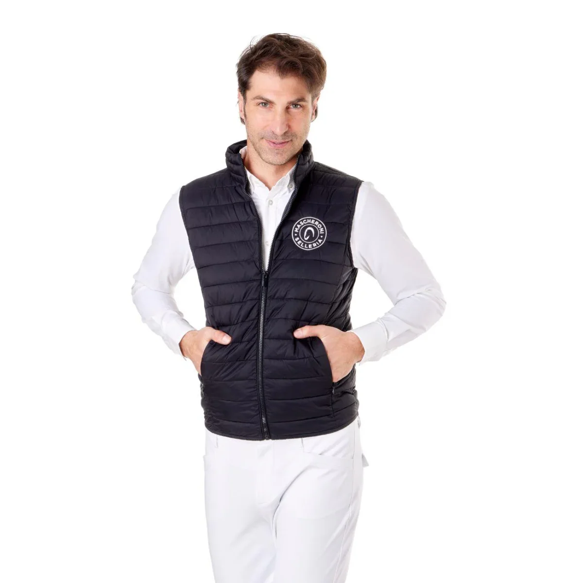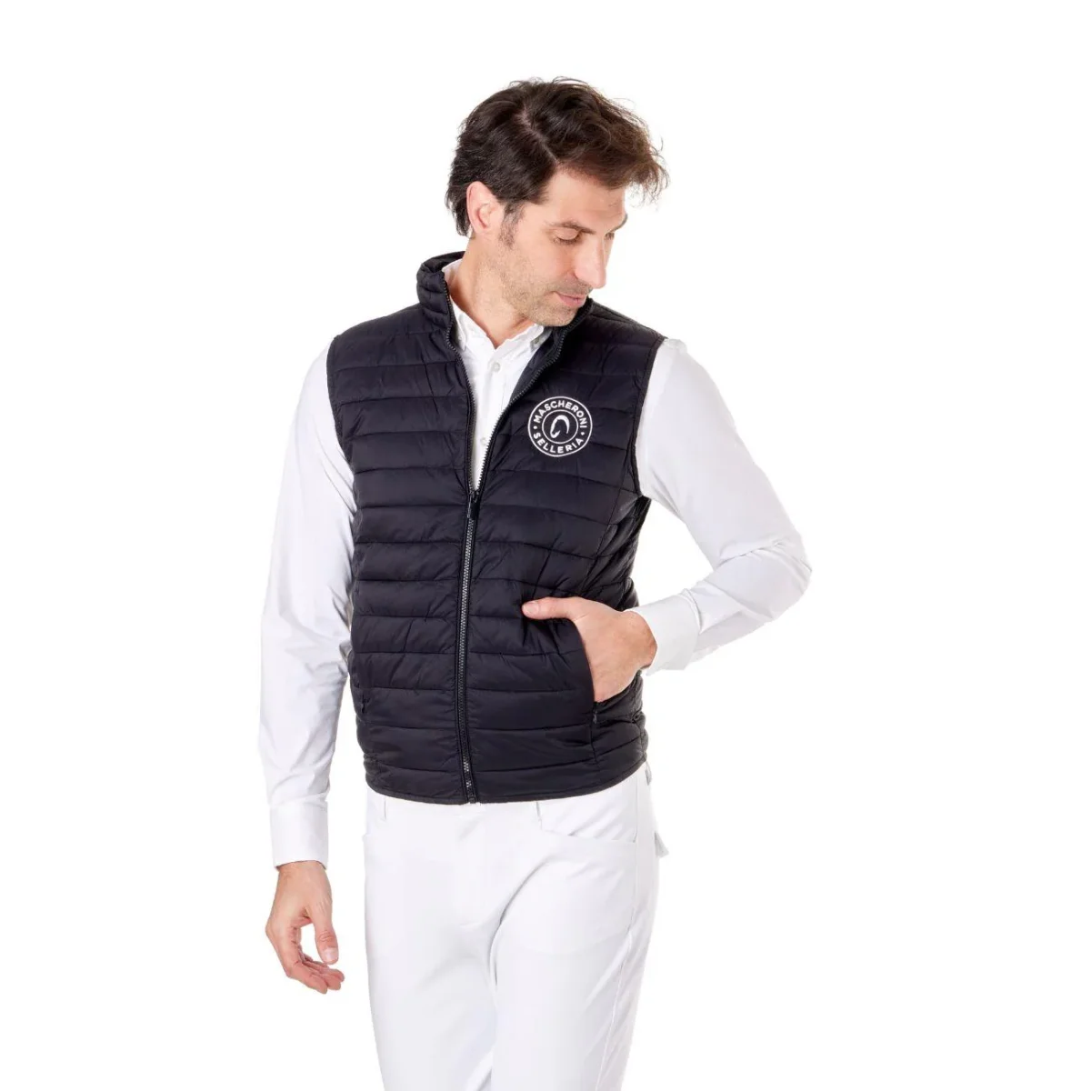 Gilet imbottito da uomo Mascheroni Selleria, caratterizzato da un design trapuntato orizzontale. Dotato di chiusura full-zip e collo alto protettivo, cerniere laterali e rifinito dal logo circolare ricamato sul petto.