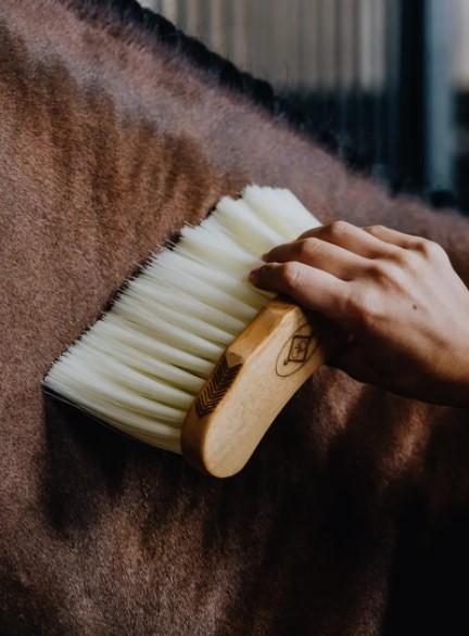Spazzola in legno con setole morbide per la rifinitura quotidiana del mantello, delicata anche su cavalli tosati o sensibili.