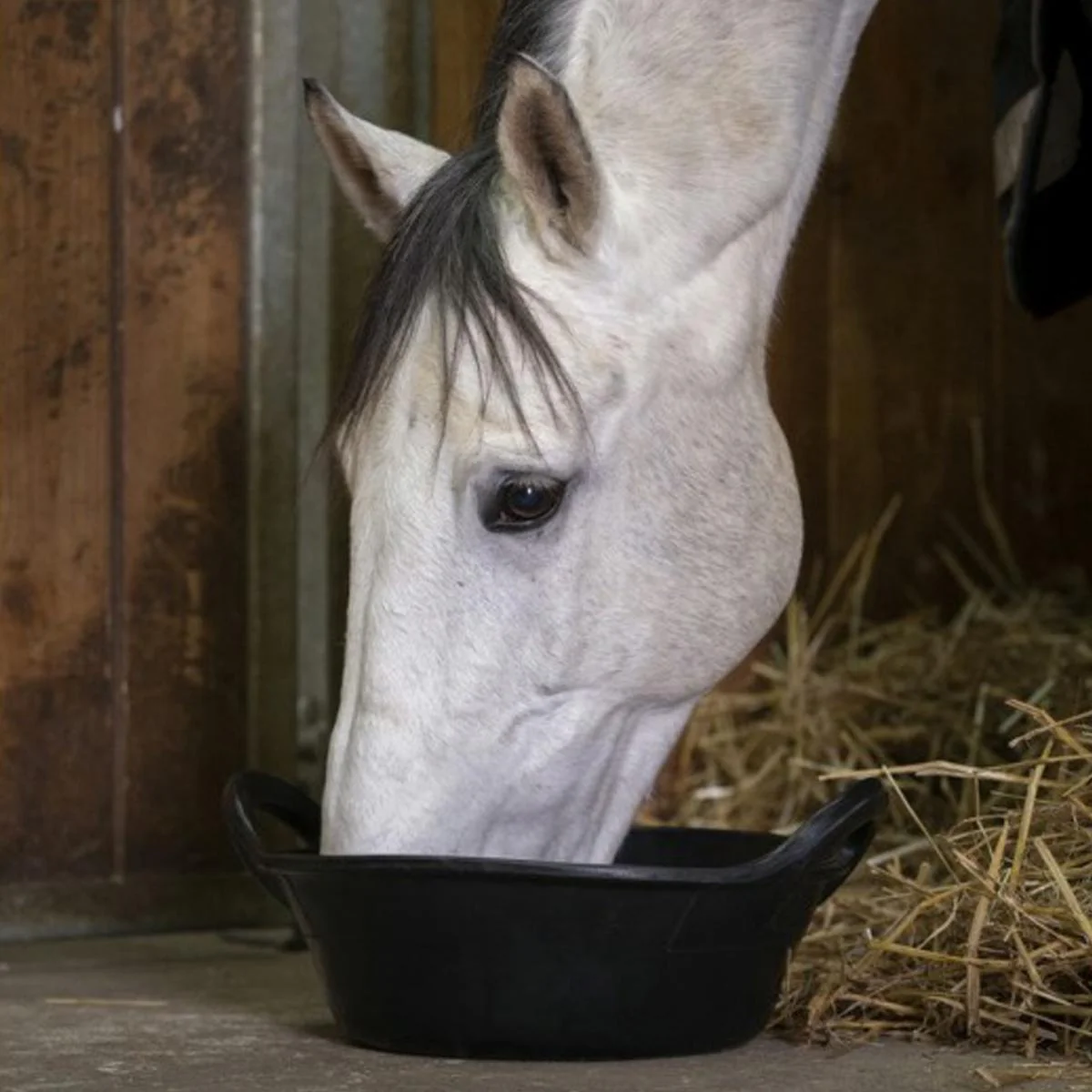 HIPPO-TONIC MANGIATOIA IN GOMMA CON MANICI FLESSIBILE 12LT. per uso equestre, realizzato per resistere all’uso quotidiano e offrire praticità in scuderia e in gara.