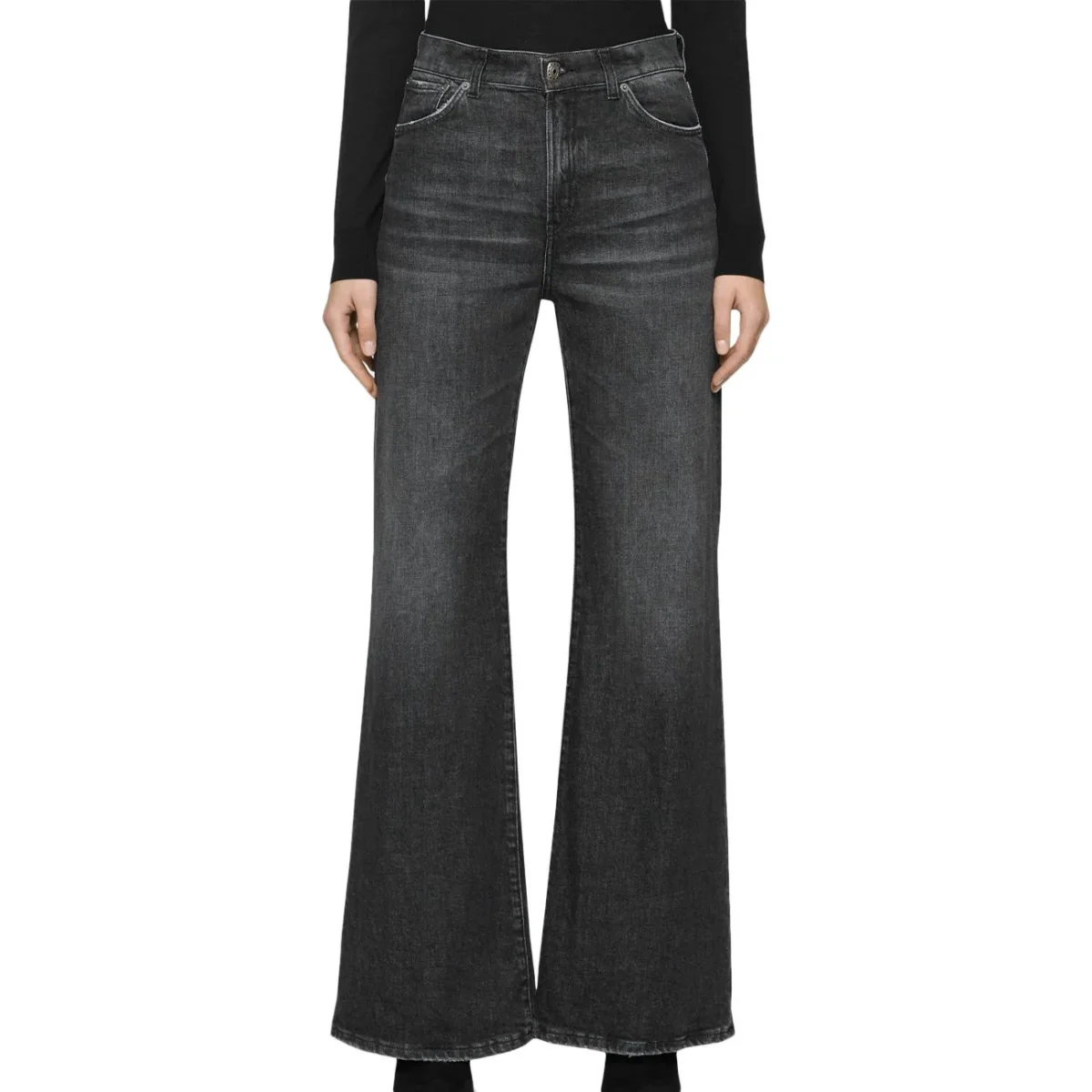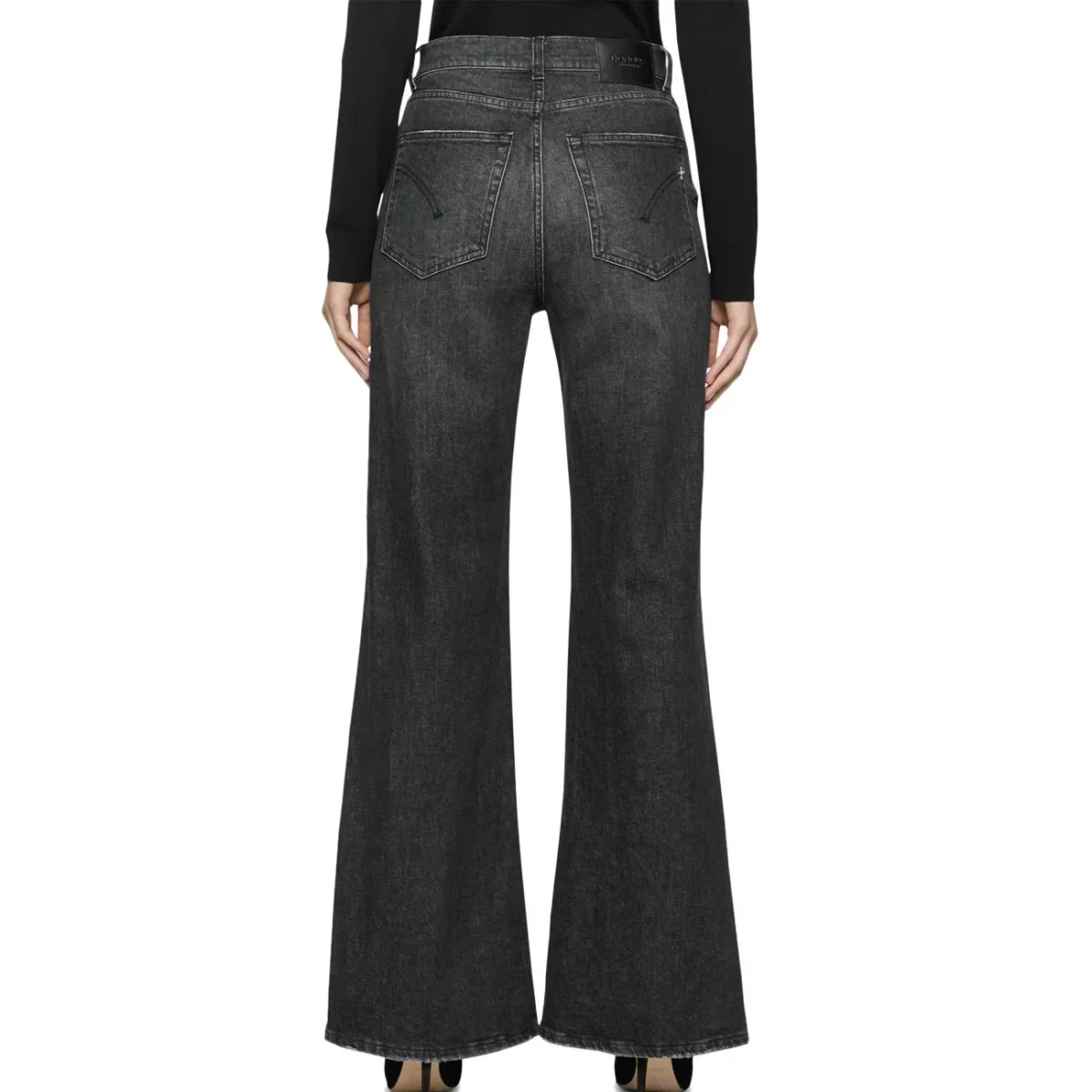 Jeans DONNA – Modello: DP619 DS0215D HS9W – Colore: NERO I jeans donna a zampa, modello five pockets wide leg fit, si distinguono per la vita regolare e la gamba ampia, perfetti per un look deciso e di tendenza. Realizzati in denim stretch nero da 12 1/2 oz, offrono comfort e vestibilità ideale. Il lavaggio nero medio pulito dona un aspetto elegante e versatile, mentre il bottone gioiello aggiunge un tocco di raffinatezza. Un capo dal fascino vintage reinterpretato in chiave moderna. Composizione: 98% Cotone, 2% Elastan