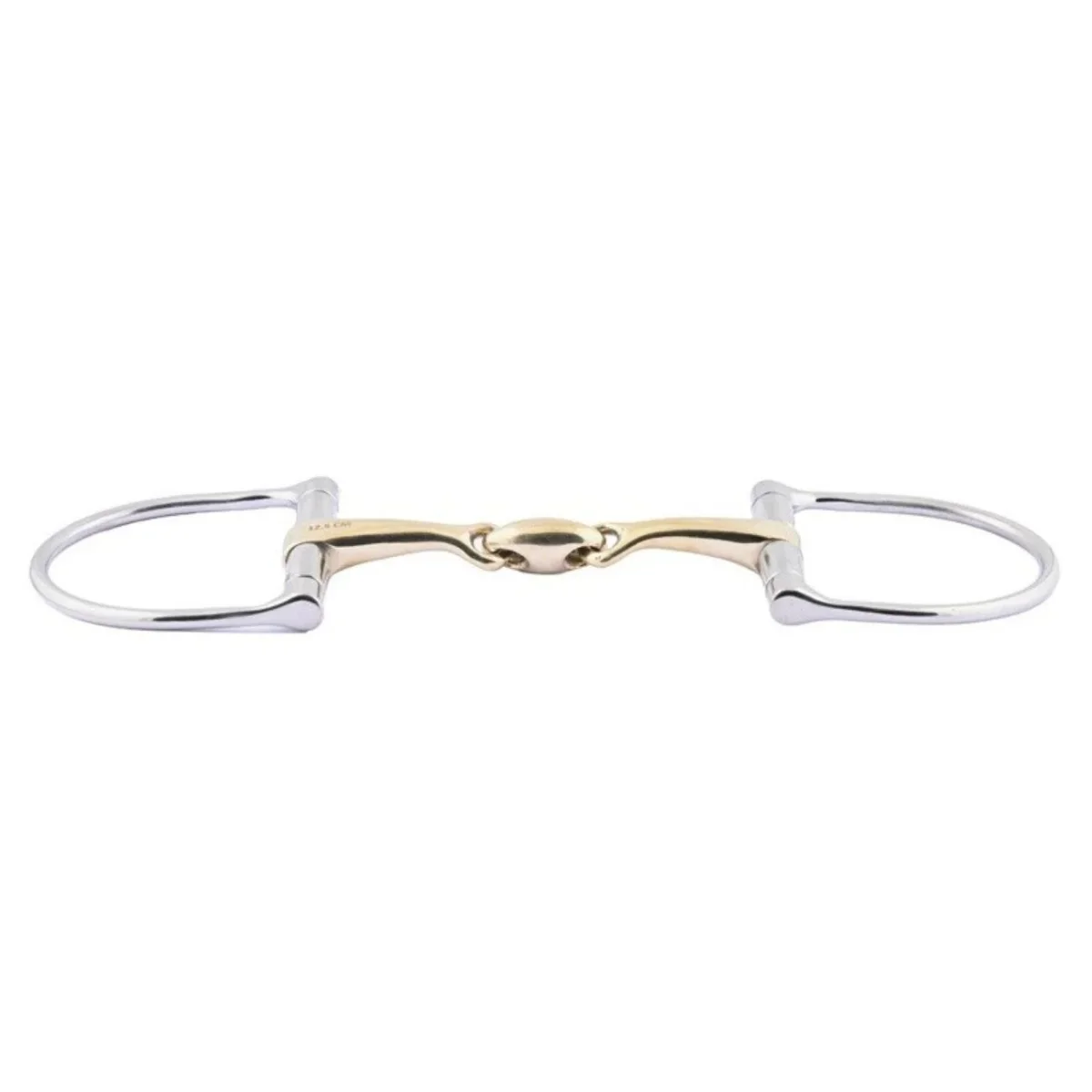 JUMP’IN FILETTO A D SPEZZATO IN 3 JUMP’IN OTTONE è un filetto a D firmato Jump’In, pensato per offrire sensibilità e controllo in sella. L’imboccatura in German silver (ottone) è apprezzata per il suo alloy that encourages salivation and softness. La geometria dell’imboccatura assicura contatto stabile e comunicazione precisa senza rinunciare al comfort. Misure di riferimento: Cannoni 17 mm Ref. 0011