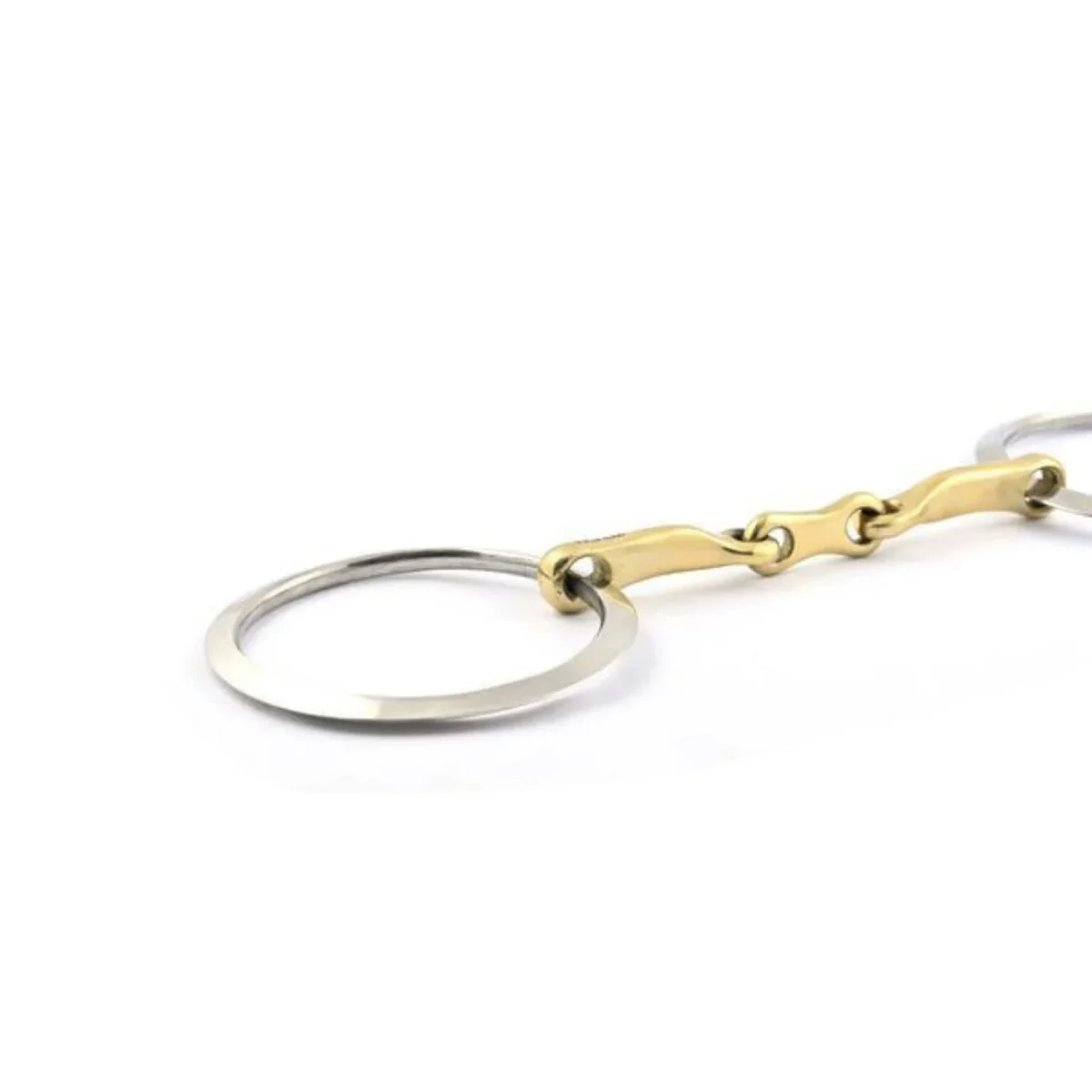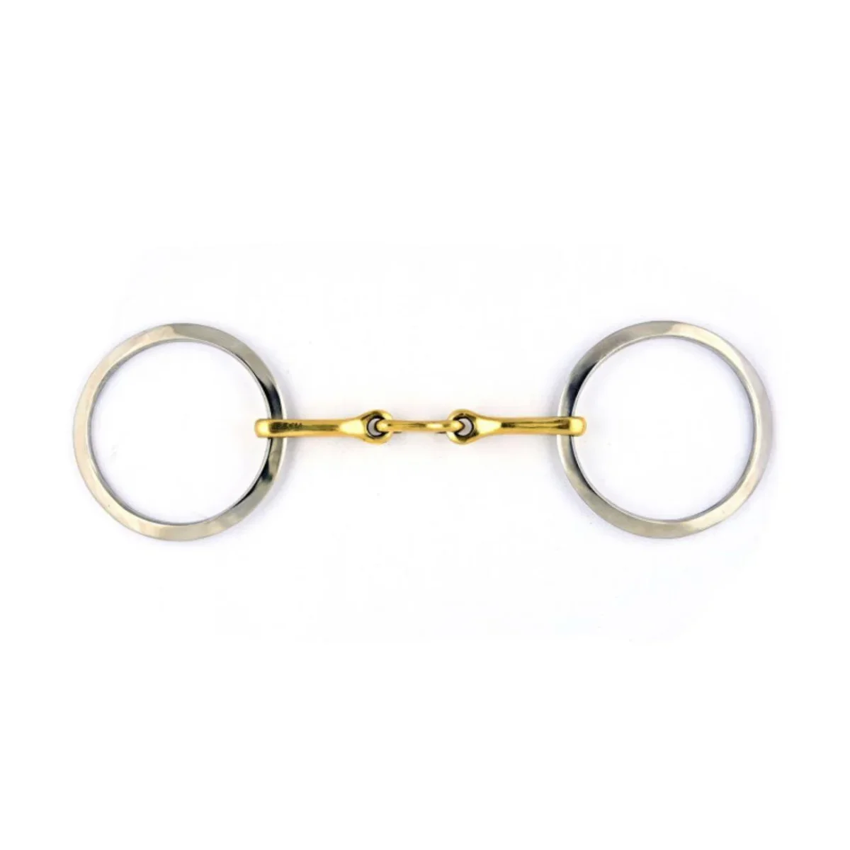 JUMP’IN FILETTO AD ANELLI FRENCH MOUTH SPEZZATO IN 3 SOTTILE E SQUADRATO JUMP’IN OTTONE è un filetto ad anelli firmato Jump’In, pensato per offrire sensibilità e controllo in sella. L’imboccatura in German silver (ottone) è apprezzata per il suo alloy that encourages salivation and softness. La geometria dell’imboccatura assicura contatto stabile e comunicazione precisa senza rinunciare al comfort. Ref. 0026B