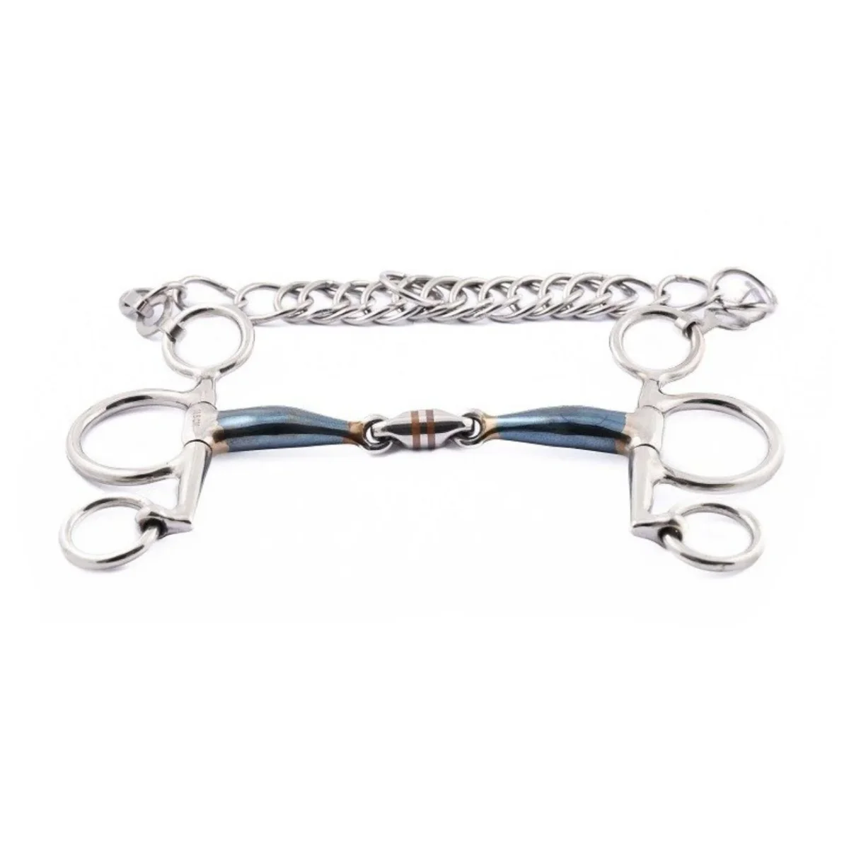 JUMP’IN PELHAM BLUE STEEL SPEZZATO IN 3 JUMP’IN Blue steel è un pelham firmato Jump’In, pensato per offrire sensibilità e controllo in sella. La costruzione assicura un’azione chiara sulle zone di pressione, mantenendo comfort e risposta regolare. Ref. 0145BLUE STEEL