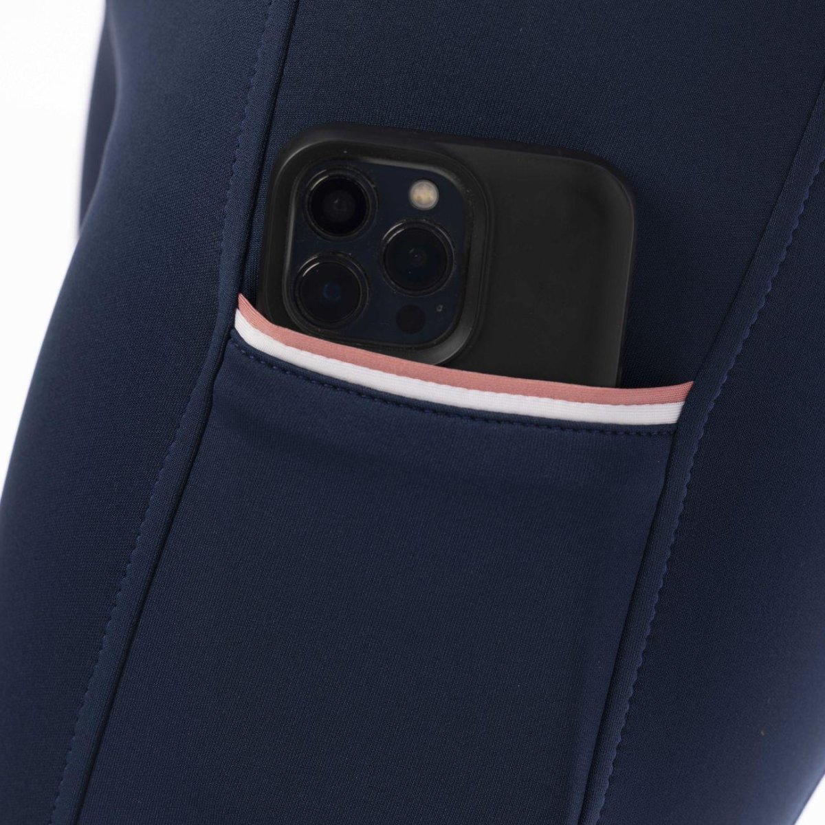 Leggings elasticizzati 4 ways stretch; garantiscono massima libertà di movimento e una vestibilità perfetta. Il grip in silicone, un’ampia cintura con logo ricamato sul retro e due tasche per telefono completano il capo.