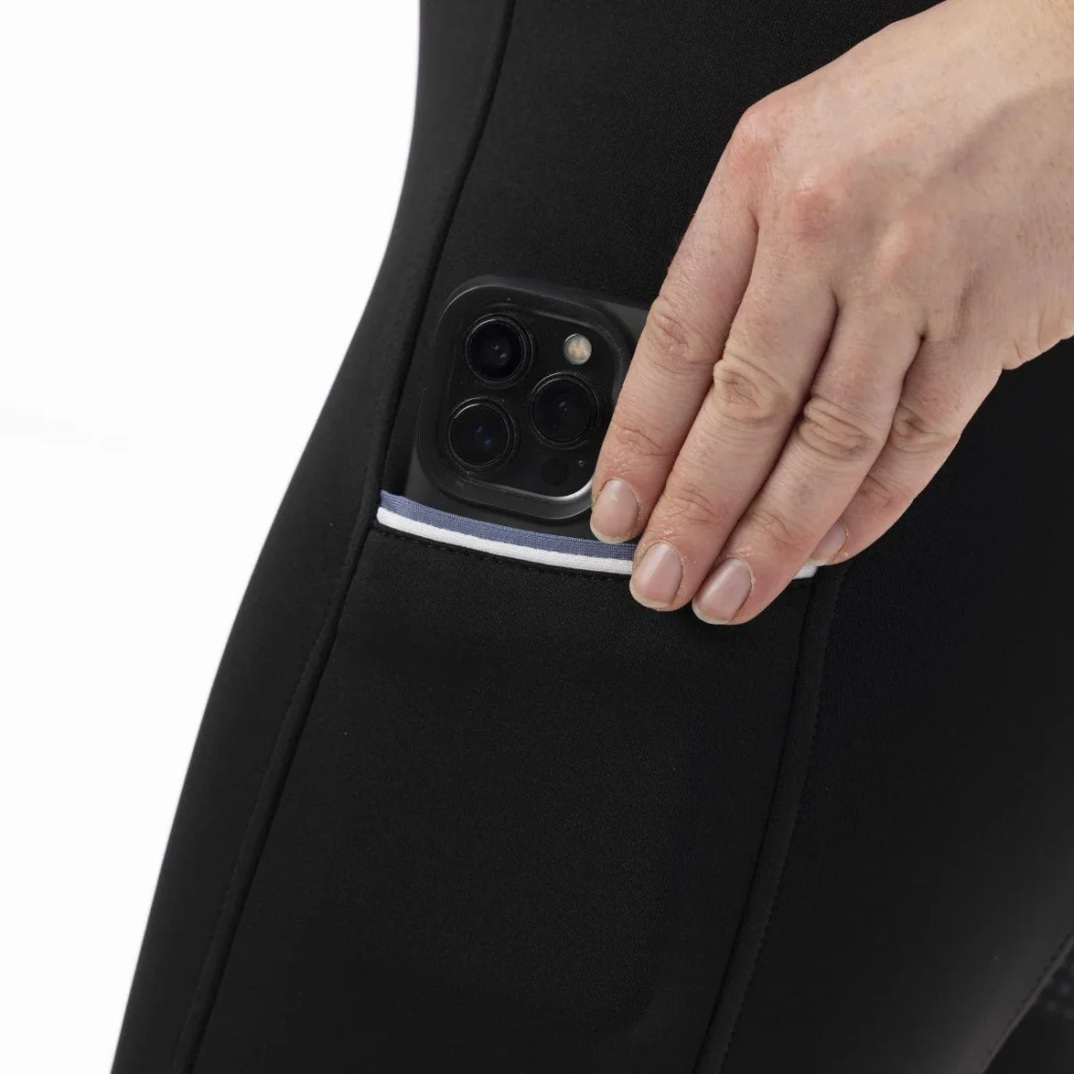 Leggings elasticizzati 4 ways stretch; garantiscono massima libertà di movimento e una vestibilità perfetta. Il grip in silicone, un’ampia cintura con logo ricamato sul retro e due tasche per telefono completano il capo.
