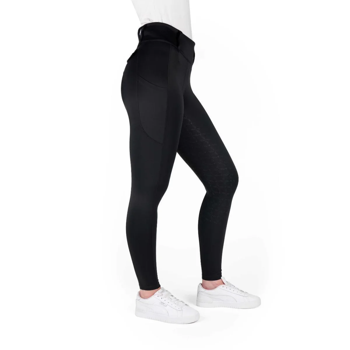 Leggings full grip in silicone con cintura larga con passanti, patta posteriore decorativa e due tasche per il telefono.