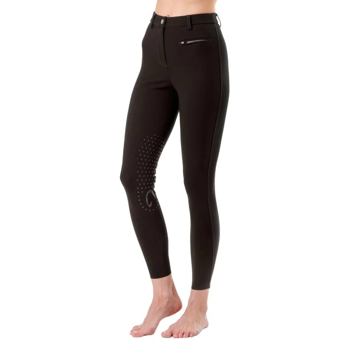 Il pantalone da equitazione Parigi Mascheroni Selleria unisce prestazioni tecniche e personalità . Il tessuto elasticizzato e traspirante garantisce libertà di movimento e comfort in ogni fase dell’attività , mentre il taglio aderente valorizza la figura senza rinunciare alla funzionalità . Il grip in silicone al ginocchio assicura stabilità in sella, mentre la tasca anteriore con zip invisibile aggiunge un tocco pratico e moderno.