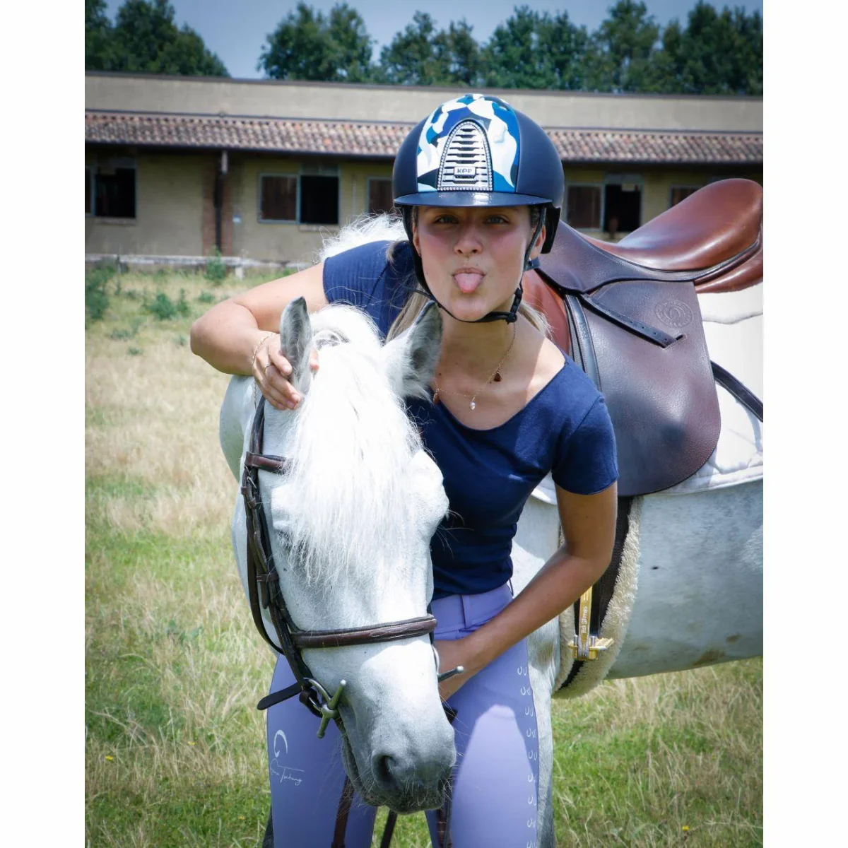 Pantaloni da equitazione da donna Mascheroni x Virginia Tschang, pensati per le amazzoni che desiderano un capo performante ma raffinato. Sono caratterizzati da un grip full seat e da una vestibilità a vita alta che valorizza la figura.