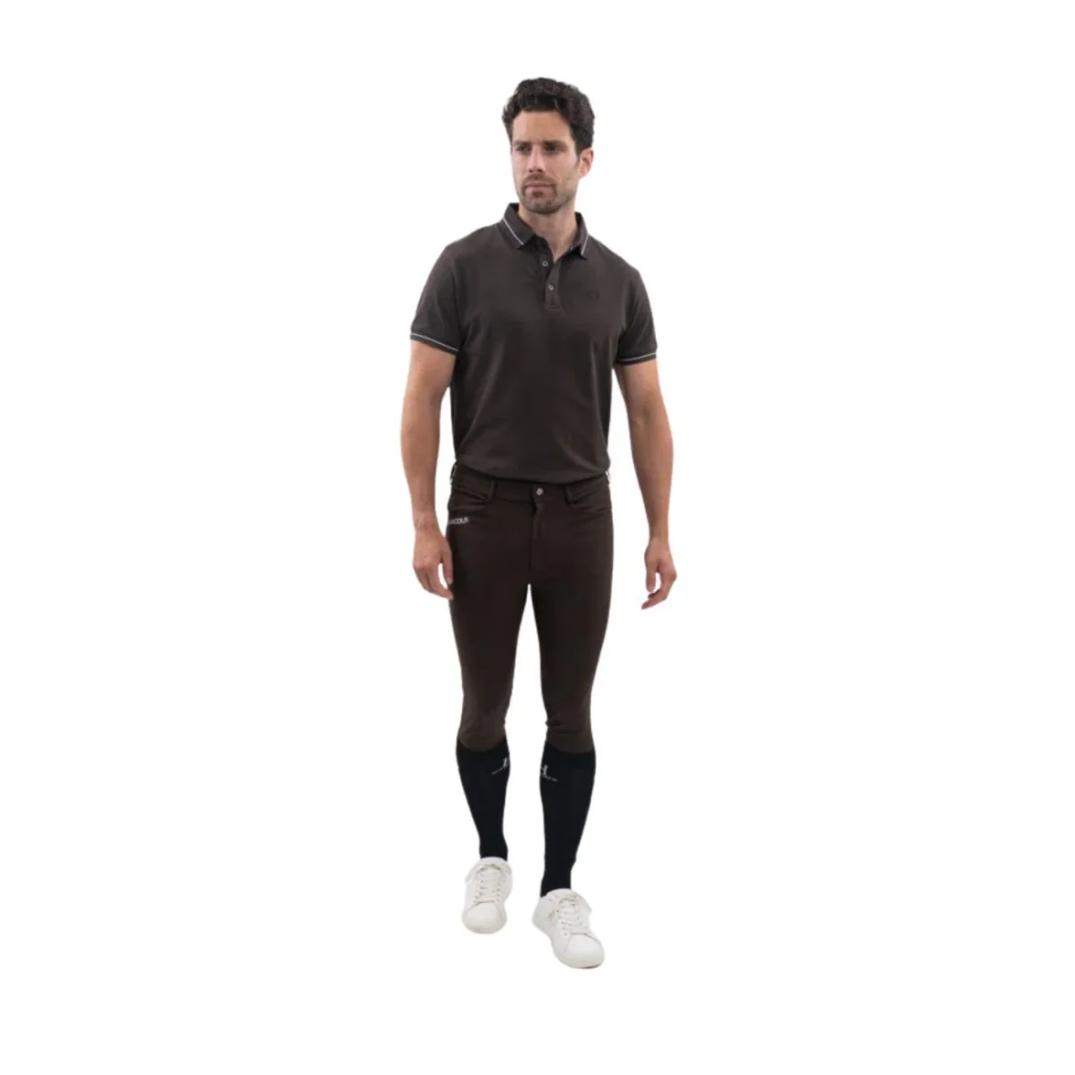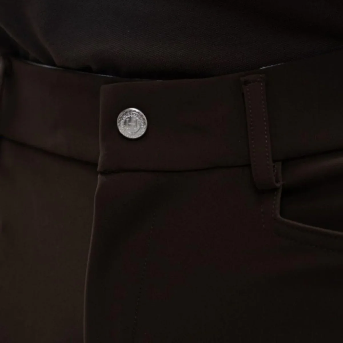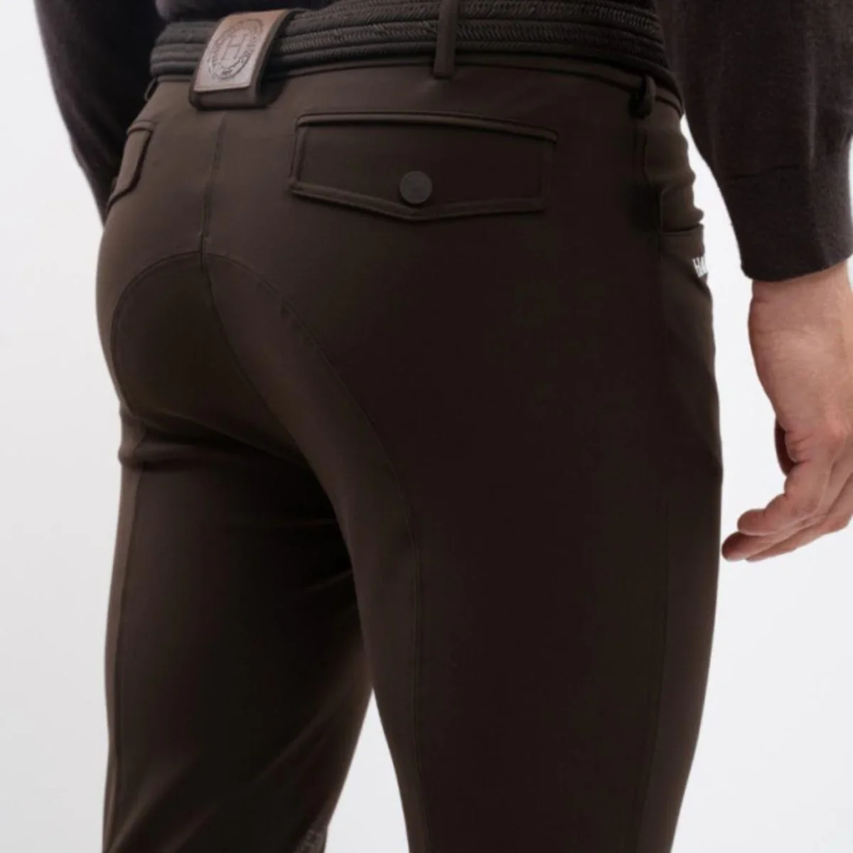 Pantaloni da equitazione da uomo con logo Harcour sotto la tasca destra e con passante per la cintura sul retro. Grip al ginocchio.