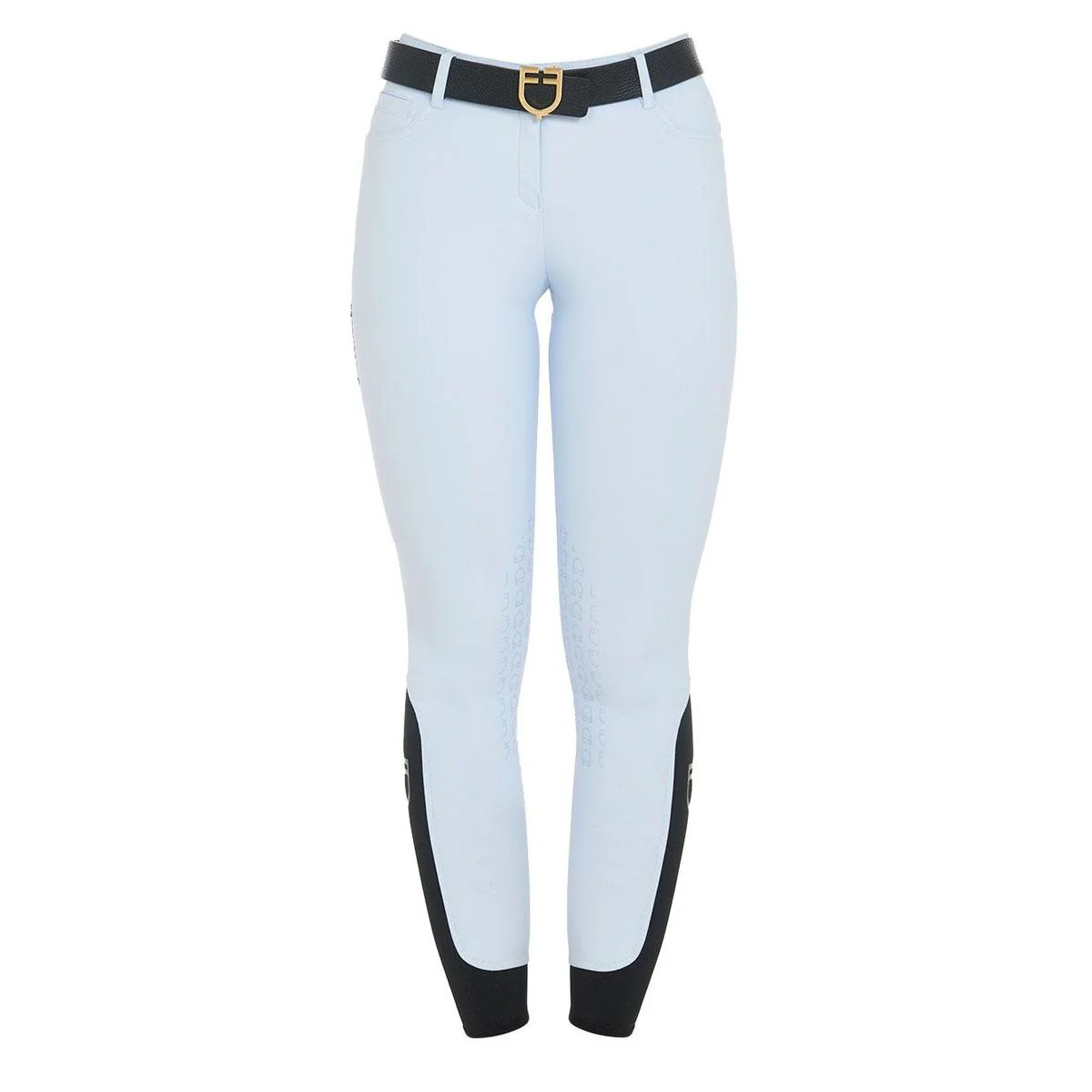 I pantaloni da equitazione da donna modello Zenda di Equestro sono progettati per garantire comfort, aderenza e stile durante l’attività a cavallo. Il design ergonomico si abbina a un tessuto tecnico elasticizzato e traspirante, per una vestibilità ottimale senza costrizioni. Il grip al ginocchio in silicone trasparente assicura stabilità in sella, mentre la fascia interna in silicone sul girovita migliora la tenuta del capo durante il movimento. L’inserto in lycra alla caviglia favorisce traspirabilità e una calzata pratica e veloce.