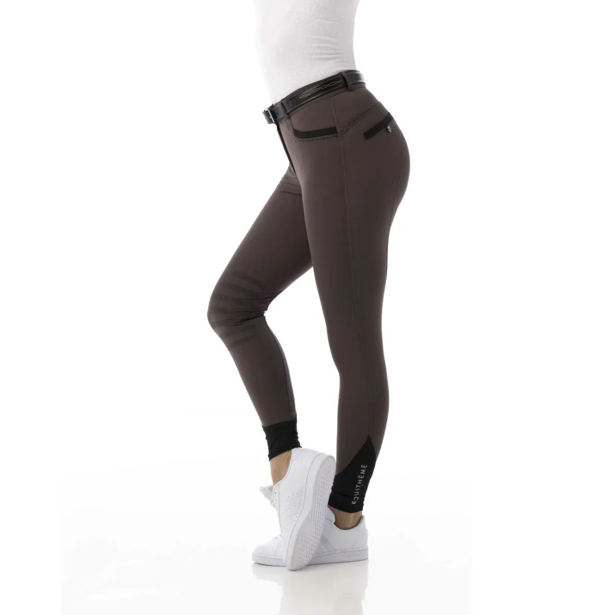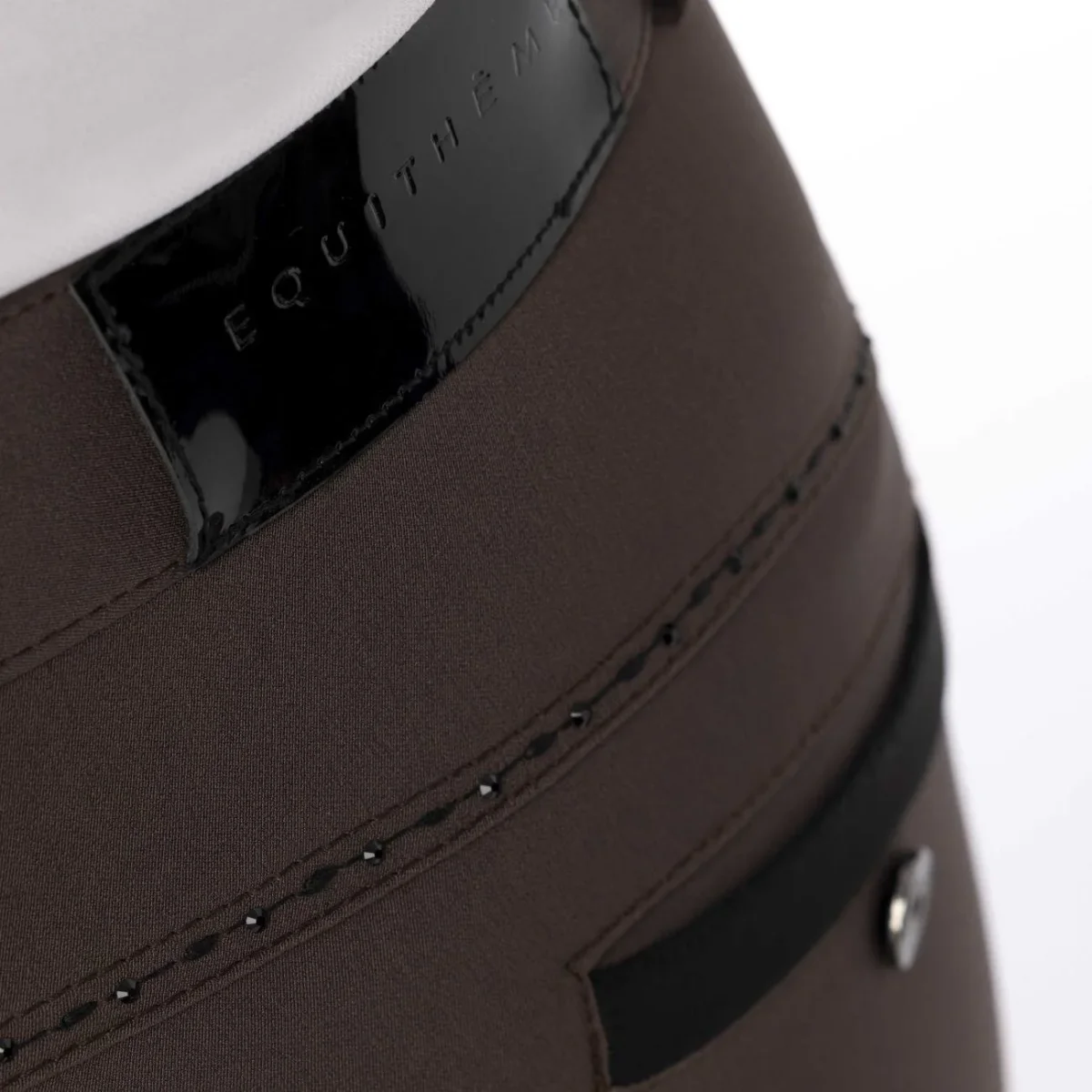 Pantalone da equitazione pensato per garantire comfort assoluto e vestibilità perfetta. Le cuciture anteriori e posteriori sono impreziosite da strass neri. Grip in silicone.