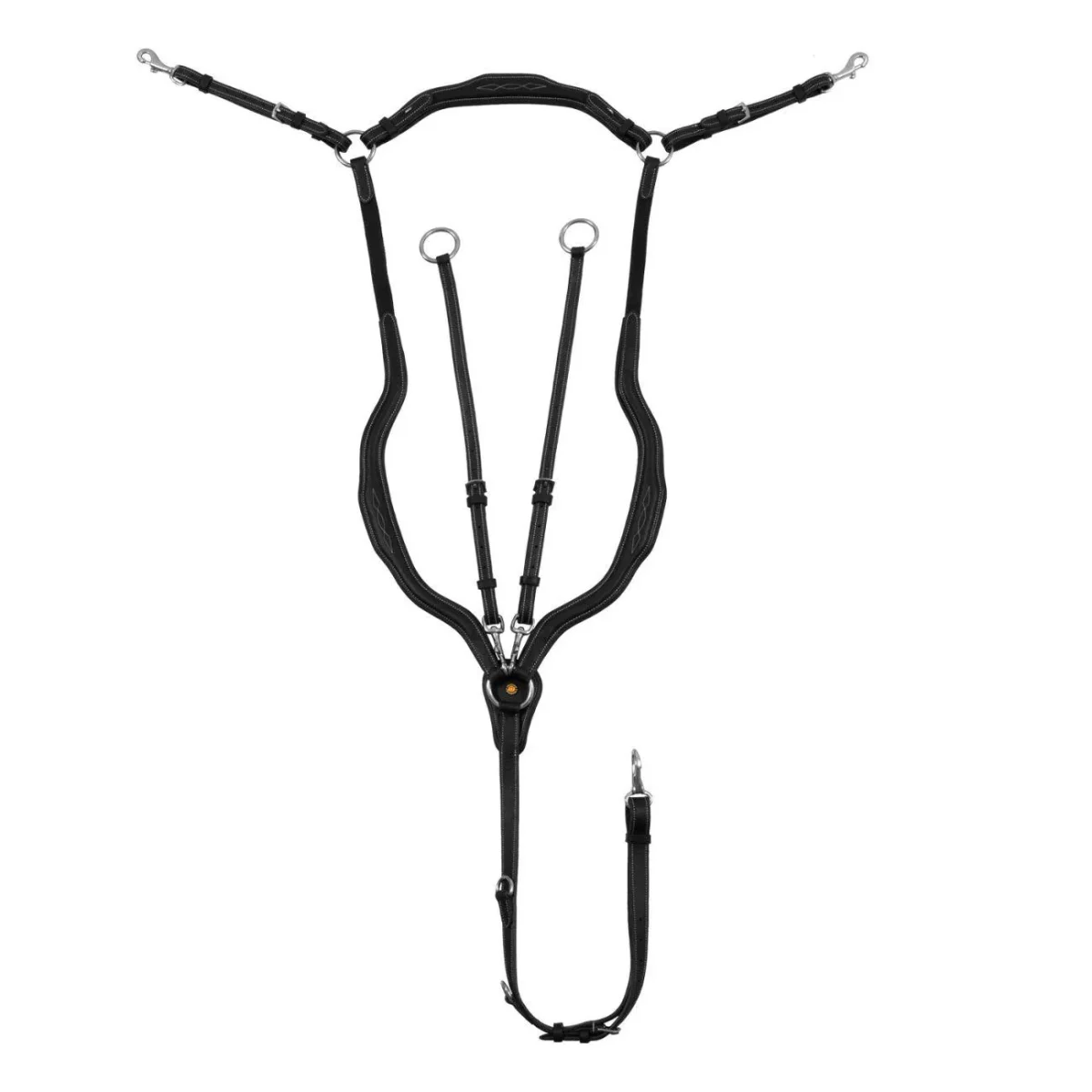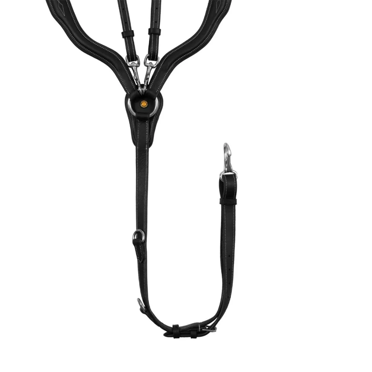 Pettorale in cuoio di alta qualità per mantenere la sella in posizione, impedendole di indietreggiare. Dotato di forchetta. Ogni cinghia o fibbia è regolabile affinché il pettorale si possa adattare perfettamente ad ogni cavallo a seconda delle necessità .