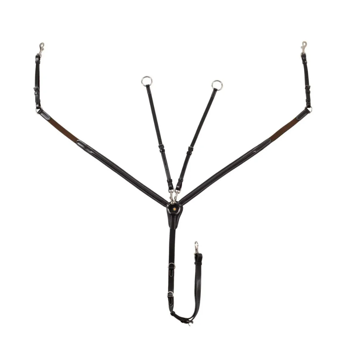 Pettorale in pelle conciata per mantenere la sella in posizione, impedendole di indietreggiare. Dotato di forchetta. Ogni cinghia o fibbia è regolabile affinché il pettorale si possa adattare perfettamente ad ogni cavallo a seconda delle necessità .