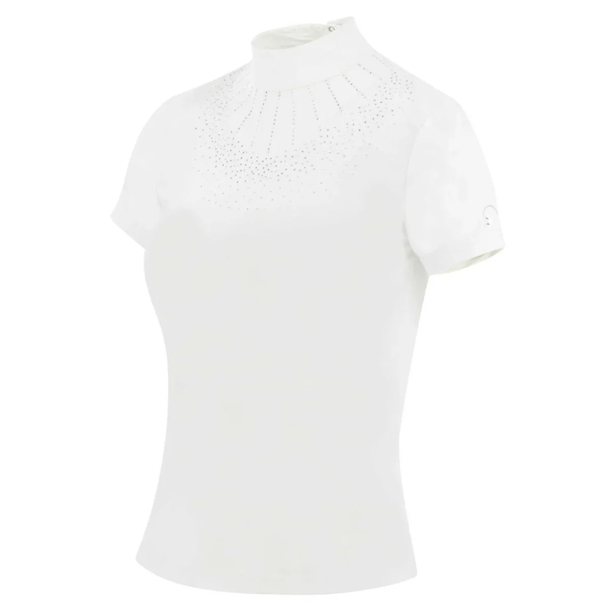 Polo da concorso a maniche corte con strass.Tessuto confortevole: traspirante, leggero ed elasticizzato. Taglio aderente con decorazione di strass sul davanti. Chiusura con bottoni sul retro.