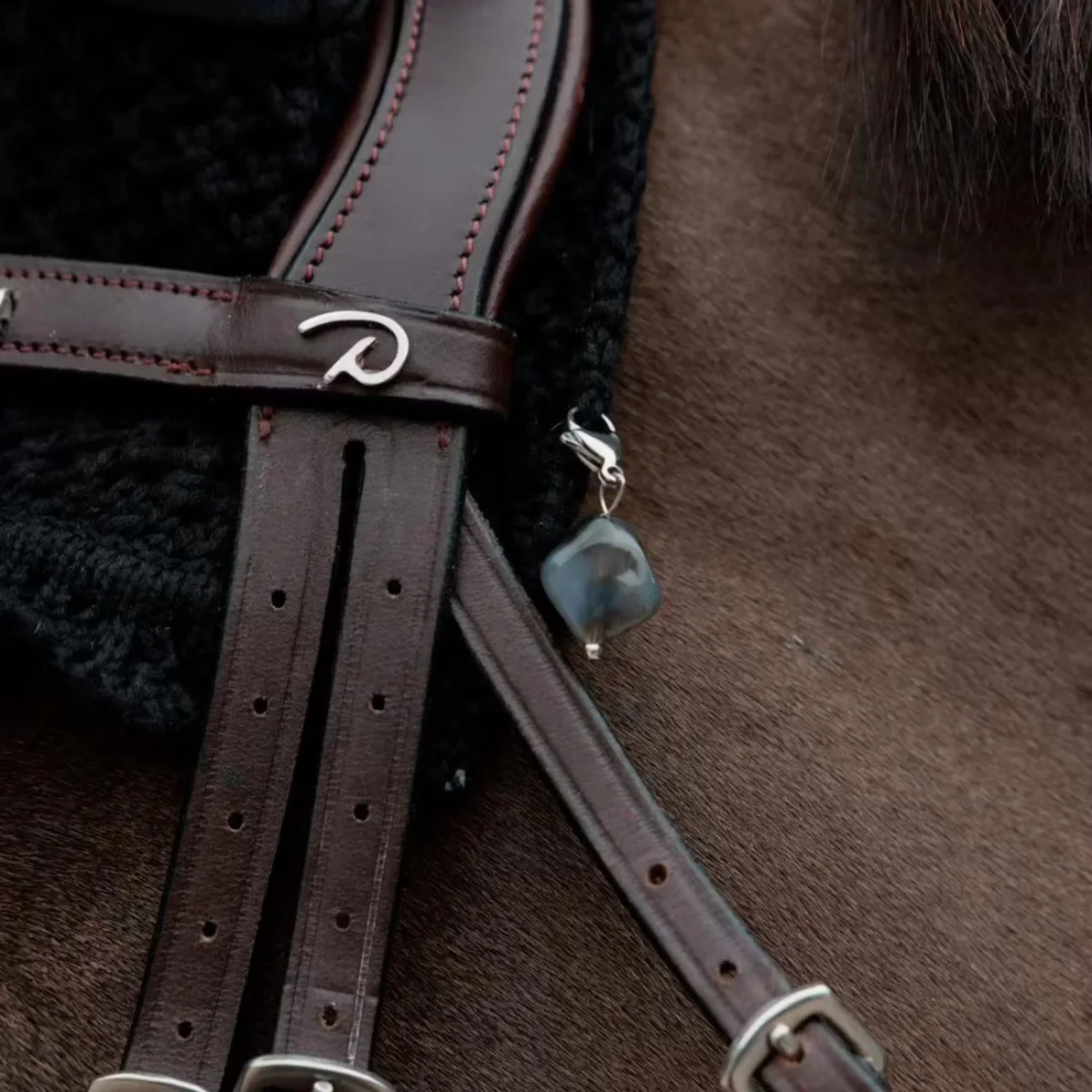 Accessorio raffinato e simbolico, il Lucky Charm Stone firmato Kentucky aggiunge un tocco personale ed elegante alla cuffietta del tuo cavallo. Pensato come portafortuna per concorsi o allenamenti, è facile da applicare grazie al piccolo moschettone in metallo, diventando un dettaglio originale e significativo, perfetto anche come idea regalo.