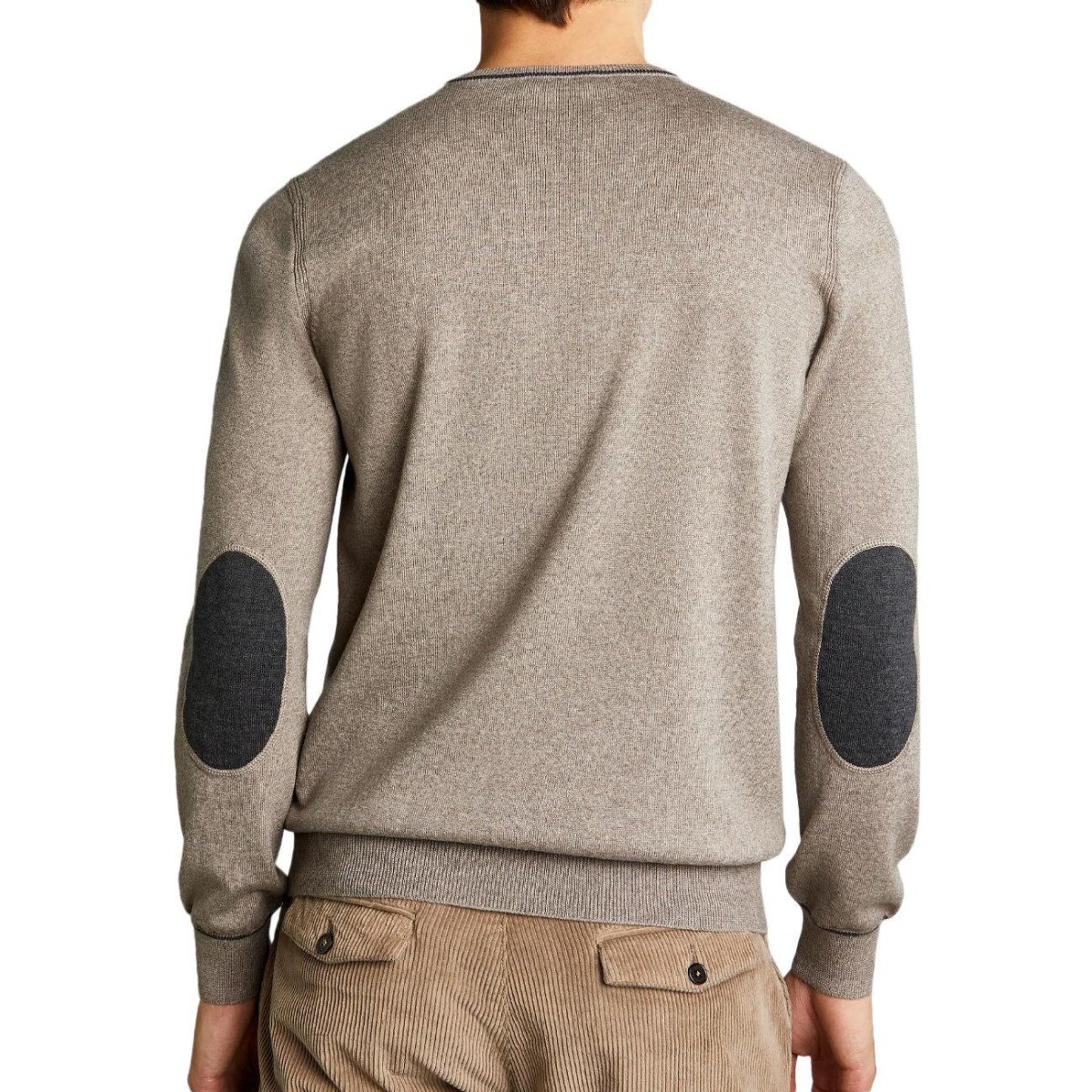 Pull UOMO – Modello: PULL LANA RASATA CON TOPPE – Colore: CASTORO/ARGILLA SCURO Pullover girocollo in maglia di lana rasata, con profili e toppe a contrasto. Un evergreen dal gusto casual intramontabile, arricchito dall`etichetta con logo Fay applicata sul fondo. COMPOSIZIONE: 100% lana vergine Codice produttore: NMMC1452230FDS