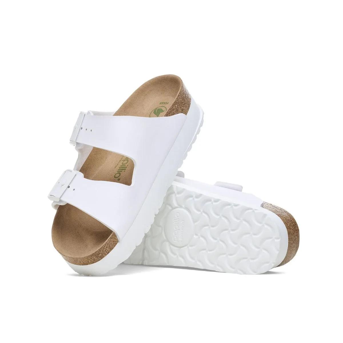 Sandali DONNA – Modello: 1027416 – Colore: BIANCO Questo sandalo alla moda con due cinturini e zeppa unisce stile e comfort in modo impeccabile. La tomaia è realizzata in Birko-Flor, un materiale sintetico resistente ma delicato sulla pelle. Il plantare anatomico in sughero e lattice garantisce un sostegno naturale, mentre la suola in EVA assicura leggerezza e ammortizzazione. La calzata stretta completa un design pensato per chi cerca eleganza e funzionalità .
