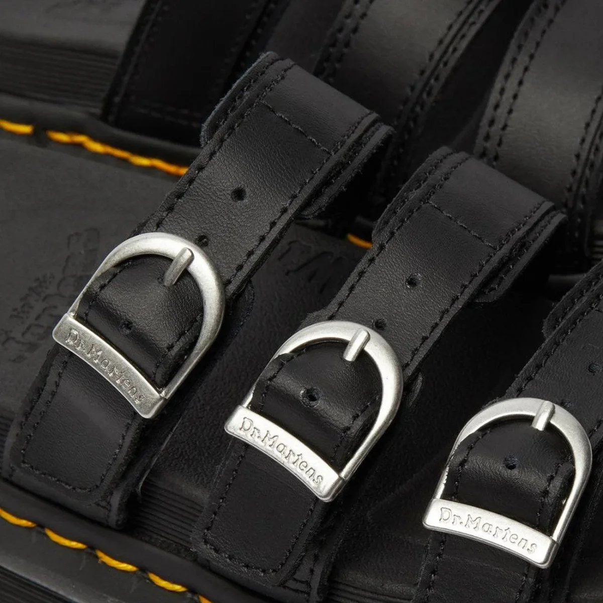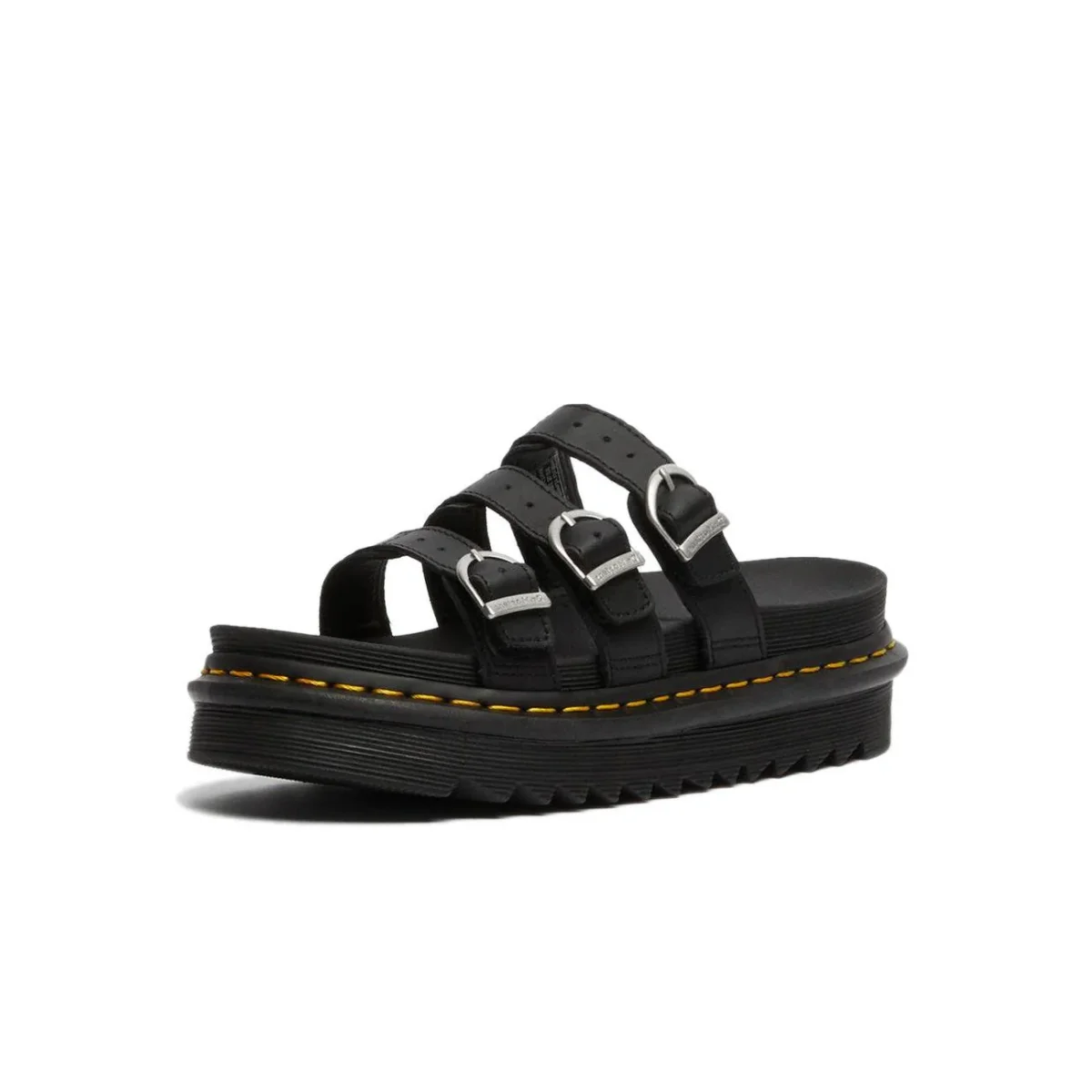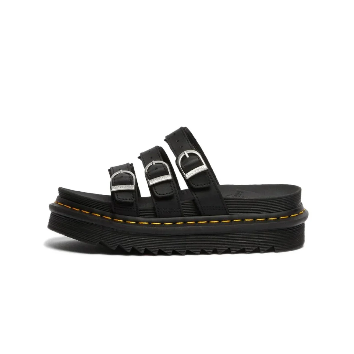 Sandali UNISEX – Modello: BLAIRE SLIDE – Colore: BLACK HYDRO Blaire, l`interpretazione Docs di un pratico sandalo a ciabatta. Caratterizzati da fibbie a ferro di cavallo logate in un audace design a tre cinturini. Questi sandali presentano una suola in EVA leggerissima e sono saldati con le iconiche cuciture gialle Dr. Martens. COMPOSIZIONE: Tomaia: 100% PU Coated Textile Rivestimento: 100% Tessuto Suola: 80% EVA / 20% PVC Codice produttore: 25456001