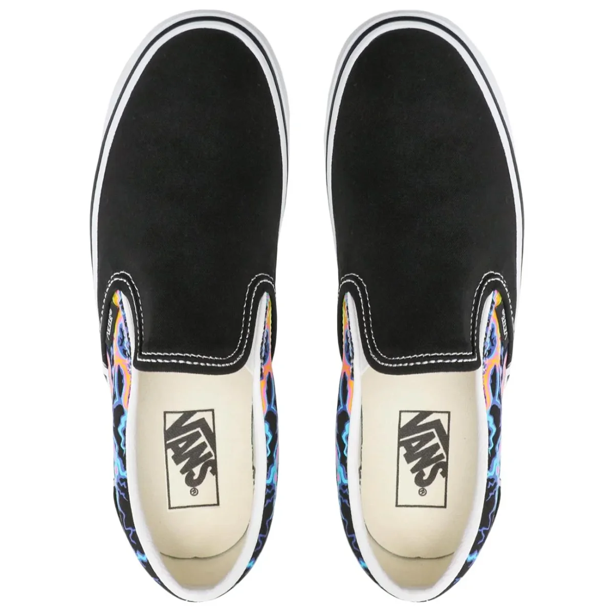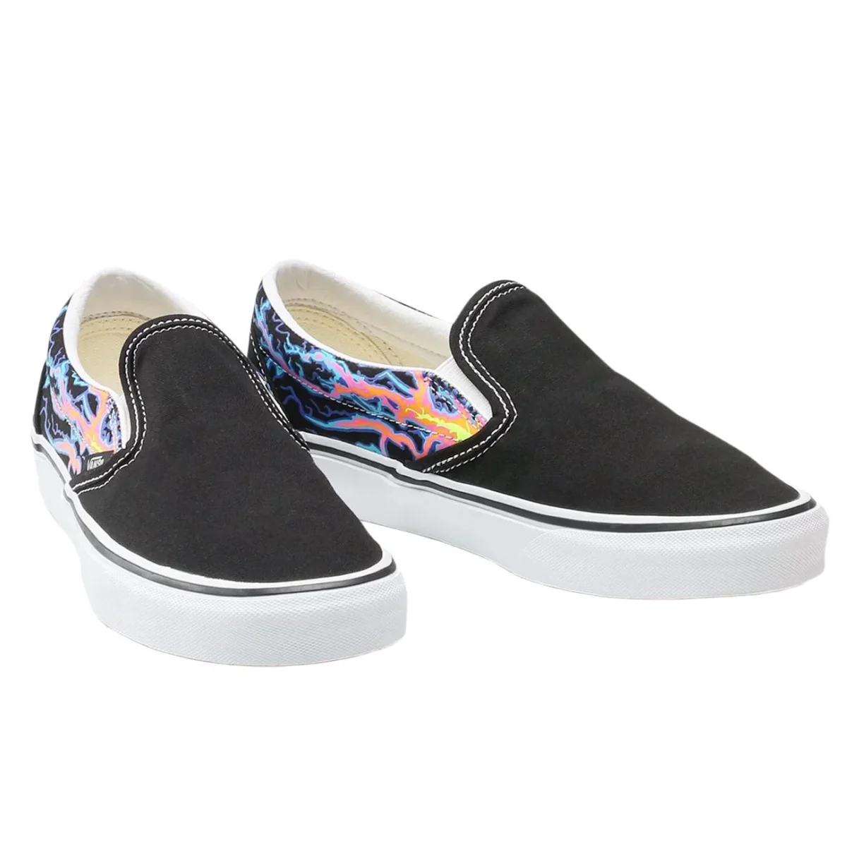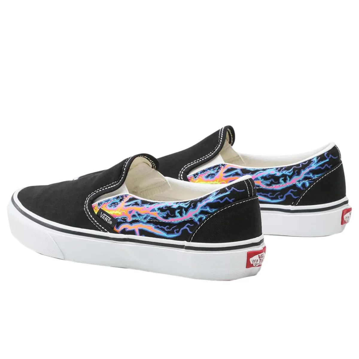 Le Vans Classic Slip-On si rinnovano con un’energia vibrante grazie alla grafica Electric Flame che decora lateralmente la tomaia in robusta tela nera. Caratterizzate dall’iconica silhouette senza lacci e dagli inserti elastici, offrono una calzata immediata e confortevole per l’uso quotidiano. Il design è rifinito dal classico collo imbottito e dalla suola waffle in gomma color caramello, garanzia di aderenza e stile senza tempo. Un mix perfetto tra estetica underground e praticità , ideale per chi cerca un look dinamico e distintivo.