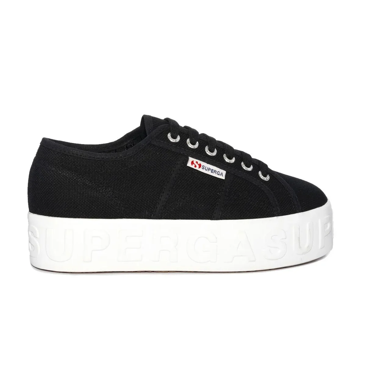 Scarpe DONNA – Modello: 2790 3D LETTERING – Colore: NERO Scarpa con zeppa alta 4 cm e maxi lettering stampato a rilievo lungo tutto il foxing. Tomaia in tela di cotone, interno sfodeato. Logo stampato sul retro e sul sottopiede. Occhielli in alluminio con logo inciso e chiusura con lacci in cotone. Suola in gomma naturale vulcanizzata. Platform. Codice produttore: S71183W-2790