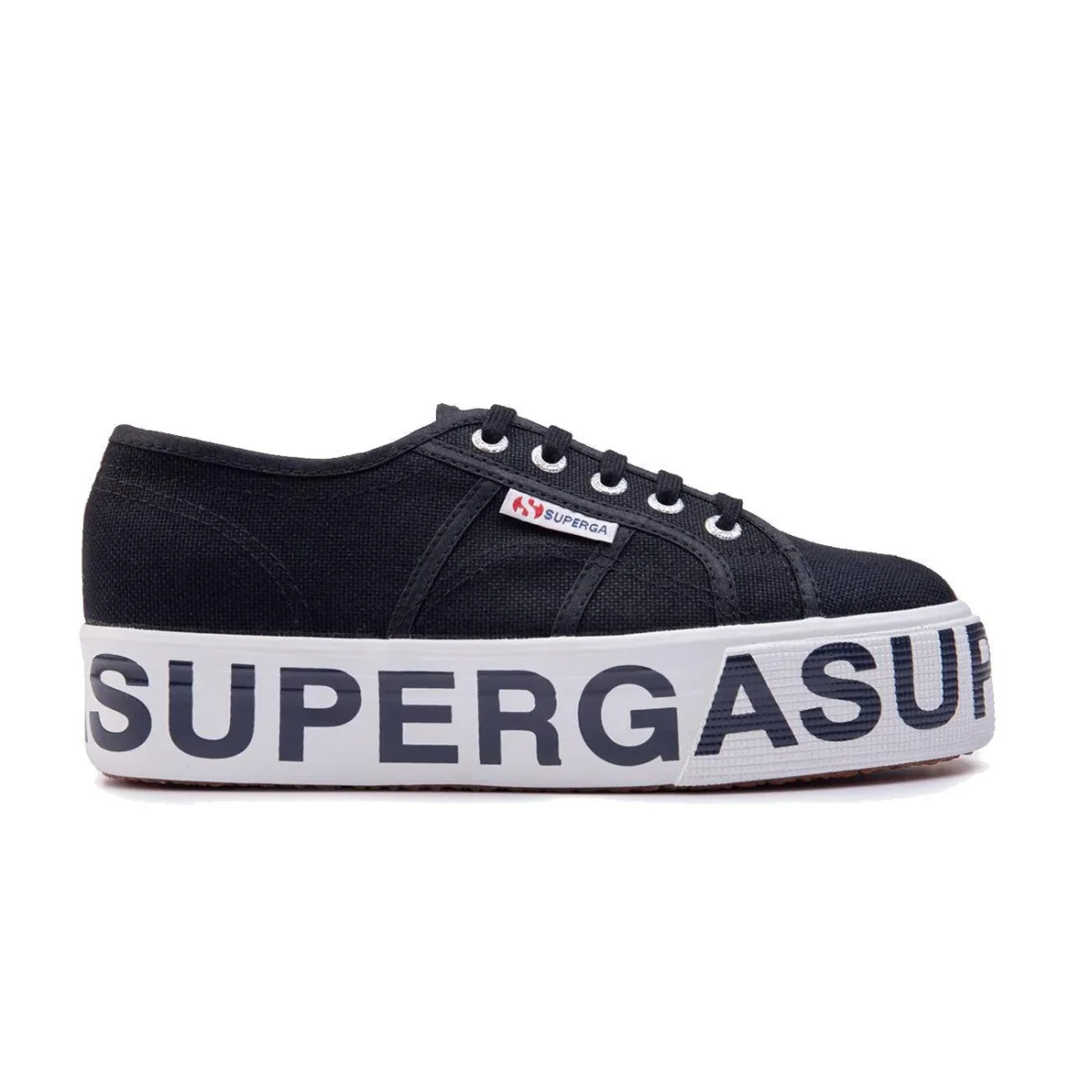 Scarpe DONNA – Modello: 2790-COTW OUTSOLE LETTERING – Colore: NERO Scarpe con maxi lettering sulla zeppa alta 4 cm. La tomaia è in tela di cotone resistente e traspirante. La suola è in gomma vulcanizzata. Interno foderato. Logo stampato sul retro e sottpiede. Occhialli in alluminio con logo inciso e chiusura con lacci in cotone. Platform. Codice produttore: S00FJ80