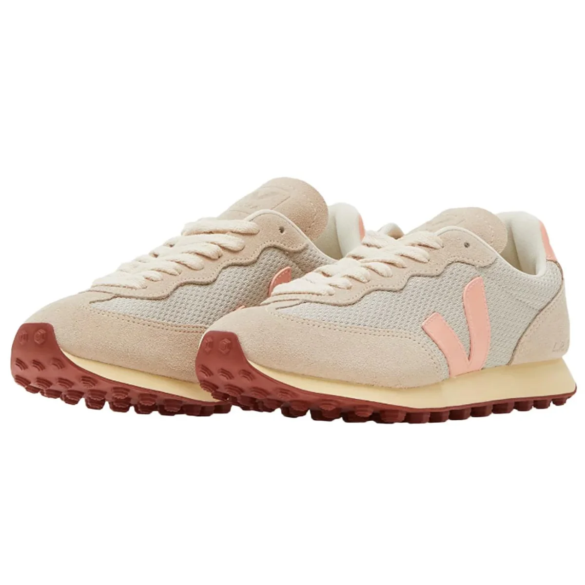 Questa sneaker Veja Rio Branco combina un’estetica rétro da running con una filosofia eco-consapevole, grazie alla tomaia in Canvas Mesh traspirante arricchita da morbidi inserti in suede. La delicata tonalità beige è vivacemente contrastata dal logo a “V” e dallo sperone posteriore in rosa pesca, creando un mix cromatico armonioso e versatile. Caratterizzata da una suola tecnica con tacchetti a rilievo color ruggine, assicura un’aderenza ottimale e un comfort duraturo per affrontare con stile la routine urbana. I dettagli distintivi, come i lacci in cotone organico e le rifiniture logate, esaltano il carattere autentico e minimalista tipico del brand francese. È la scelta ideale per chi cerca una calzatura leggera e sofisticata, perfetta da abbinare a look casual-chic senza rinunciare alla qualità dei materiali.