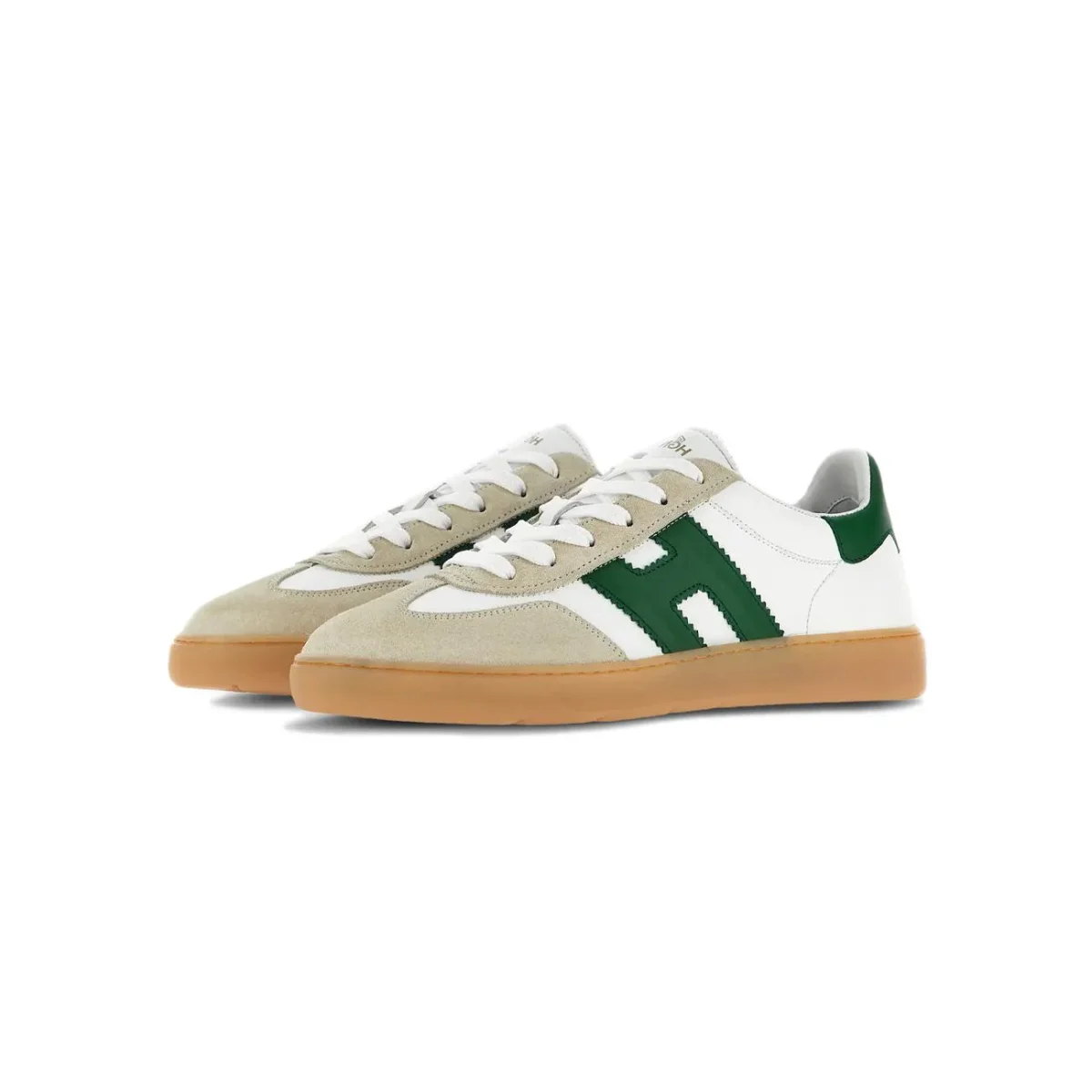 Sneakers UOMO – Modello: COOL – Colore: BIANCO VERDE Un mix perfetto di elementi retrò e linee contemporanee, queste sneakers si caratterizzano per un look sobrio e raffinato. La tomaia è in pelle, con un’H laterale dentellata in nappa mentre il fussbett in memory foam assicura una calzata super ammortizzata.