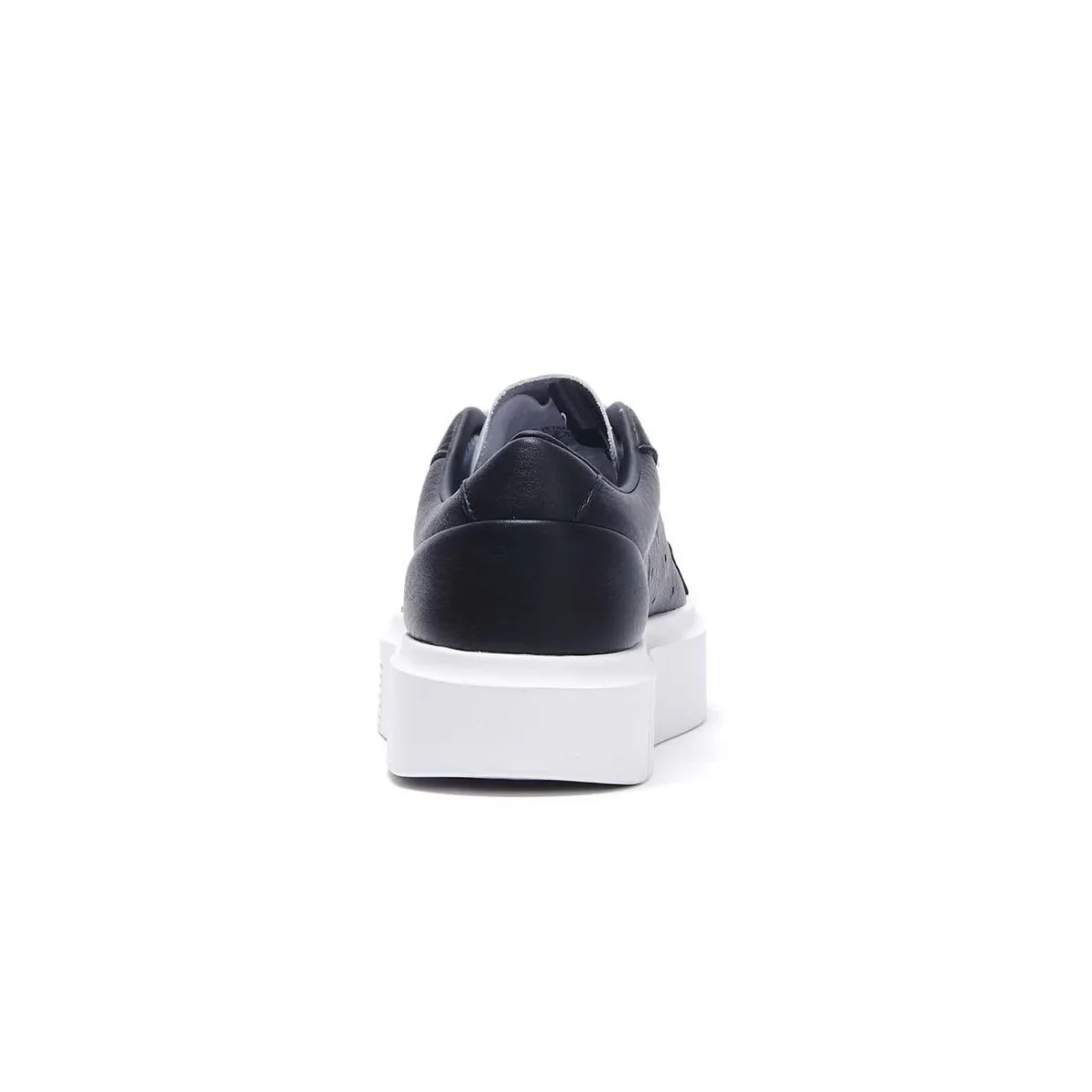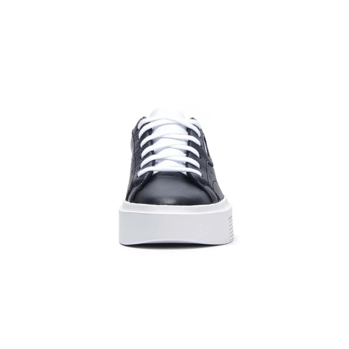 Sneaker DONNA – Modello: EE4519 – Colore: NERO/BIANCO Questa scarpa in pelle nera presenta una linea a punta abbinata a una suola boldizzata in gomma bianca, creando un contrasto deciso. I lacci bianchi e le 3-Stripes traforate su entrambi i lati valorizzano il design, mentre il logo a contrasto completa il look. Perfetta per chi cerca un equilibrio tra eleganza urbana e stile sportivo.
