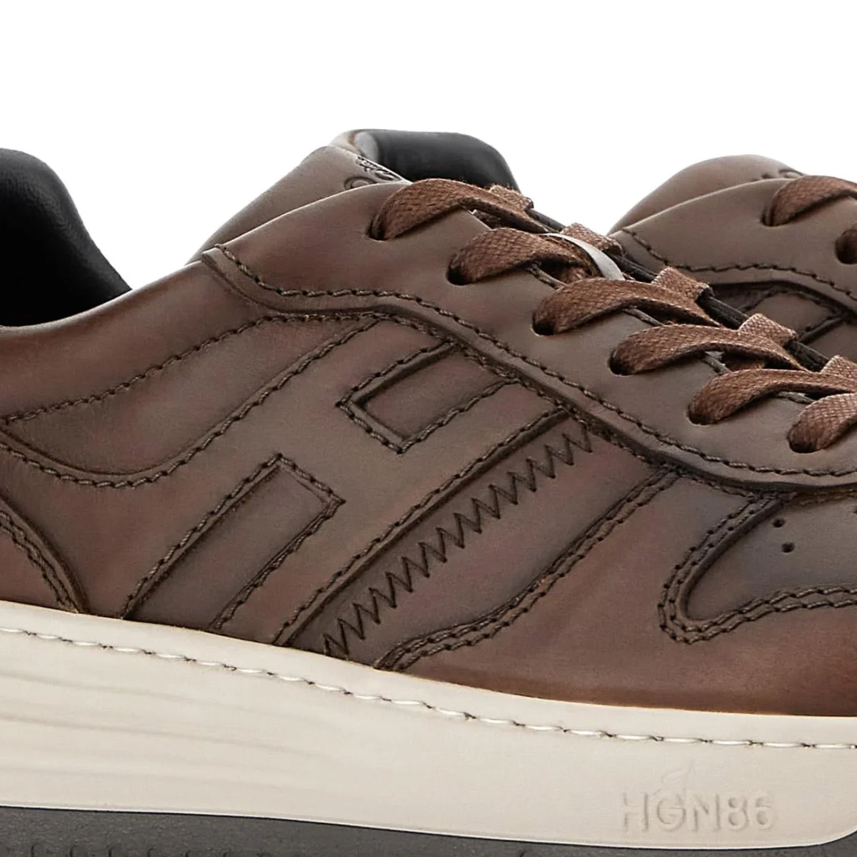 Sneakers UOMO – Modello: H630 – Colore: CORTECCIA CHIARO MARRONE Queste snakers possiedono tomaia in pelle liscia spazzolata caratterizzata da un’H allungata che gira intorno al tallone. La suola è in EVA extralight. Un vero must-have del guardaroba contemporaneo che presenta fussbett in memory foam che assicura morbidezza e ammortizzazione. Codice produttore: HXM6300EU54QTUS013