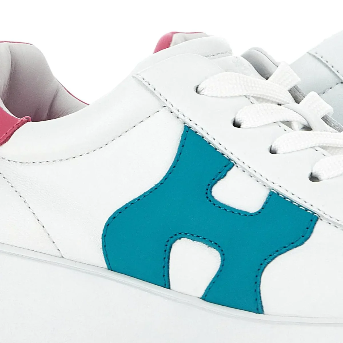 Sneakers DONNA – Modello: H564 – Colore: BIANCO ROSA VERDE Sneakers dalla linea morbida e raffinata realizzata in pelle liscia, possiede suola extralight e H laterale. Il fussbett in memory foam assicura ammortizzazione a questo modello cool e versatile. Codice produttore: HXW5640DN61QZB0SRW