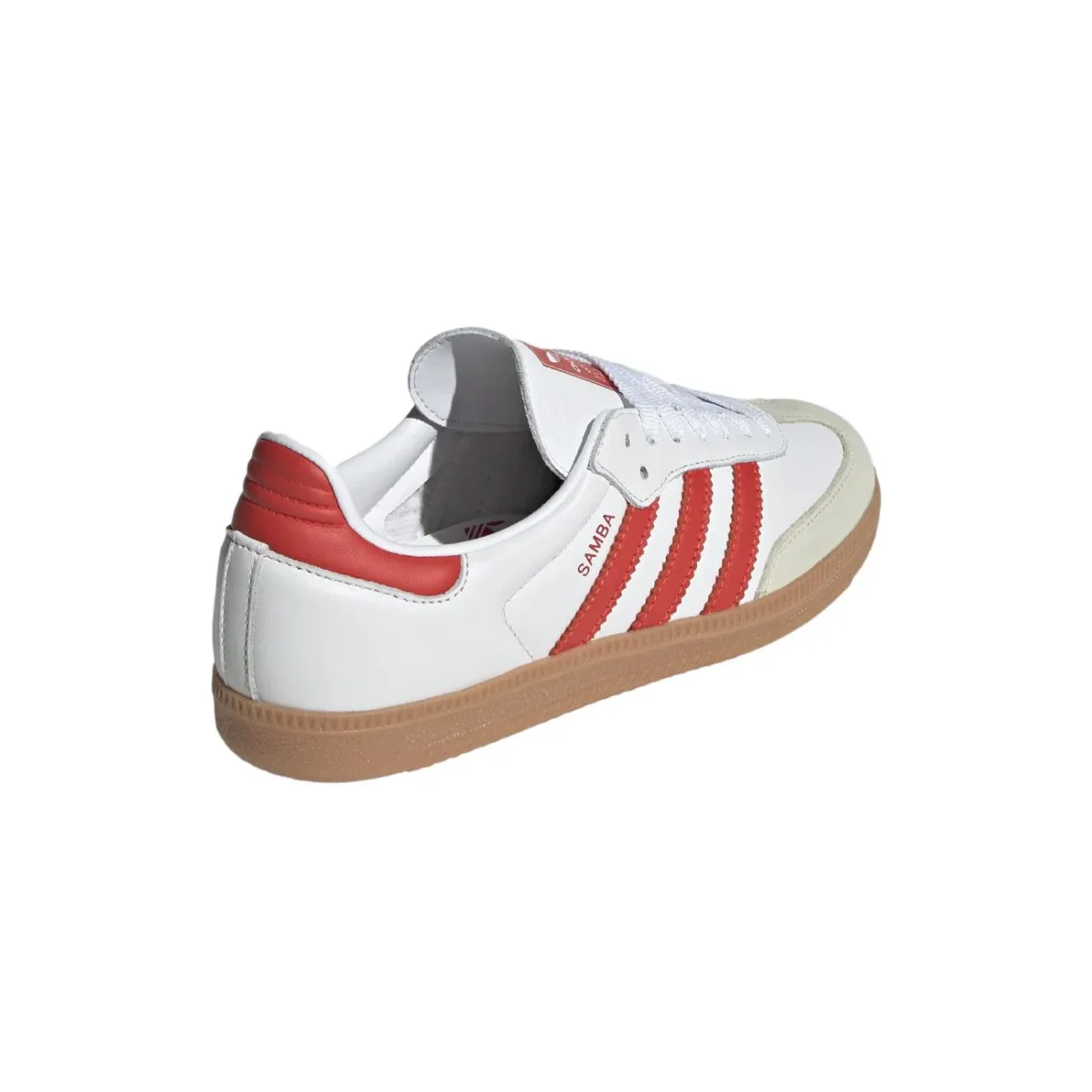 Sneakers DONNA – Modello: SAMBA OG – Colore: WHITE RED Sneakers super cool con tomaia in pelle morbida, punta con protezione in nabuk e suola in gomma rinforzata. Sono perfette per offrire agilità e controllo, indossale per un look lifestyle e casual in ogni situazione.
