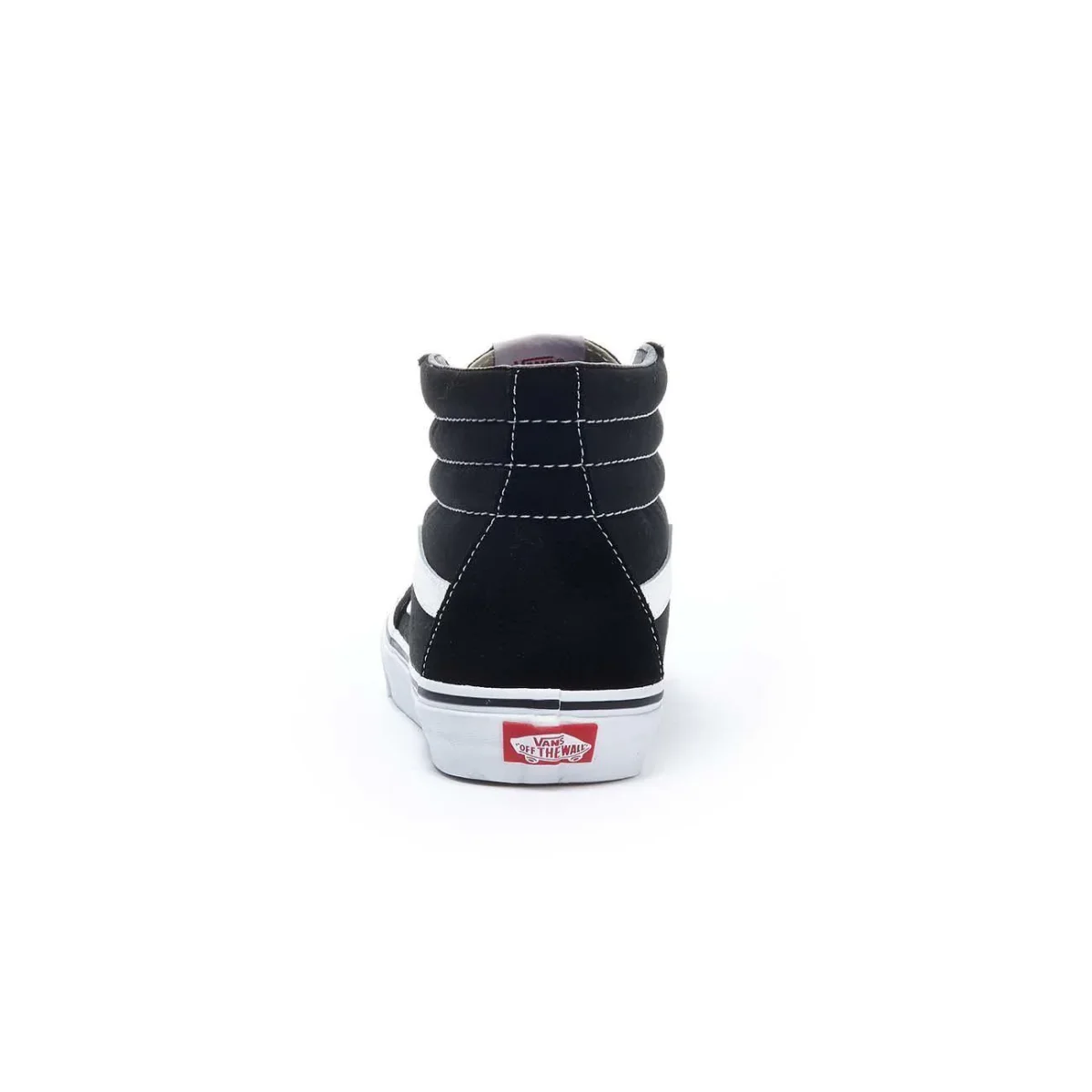 Sneakers UOMO – Modello: SK8-HI – Colore: BLACK WHITE Vans Sk8 Hi dal taglio alto in suede nero con banda in pelle bianca. Collare imbottito e suola in gomma bianca. Codice produttore: VD5IB8C