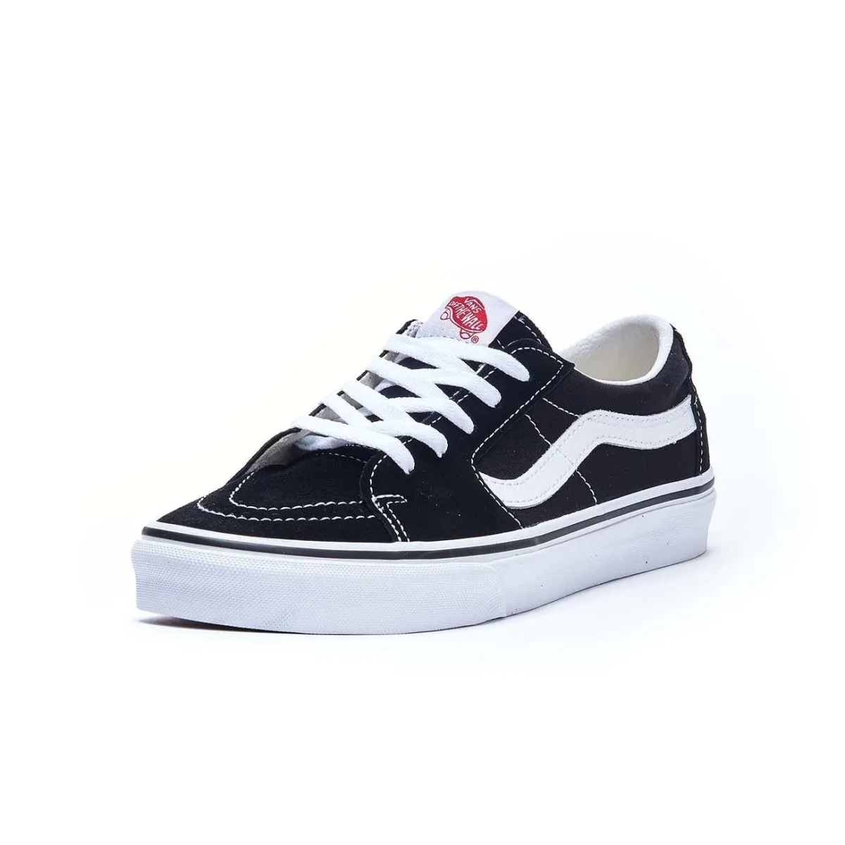 Sneakers UOMO – Modello: SK8-LOW – Colore: BLACK TRUE WHITE Vans Sk8-low bassa stile skate in suede e tela con banda ondulata laterale, lacci a contrasto e collare imbottito. Logo sul tallone. Codice produttore: VN0A4UUK