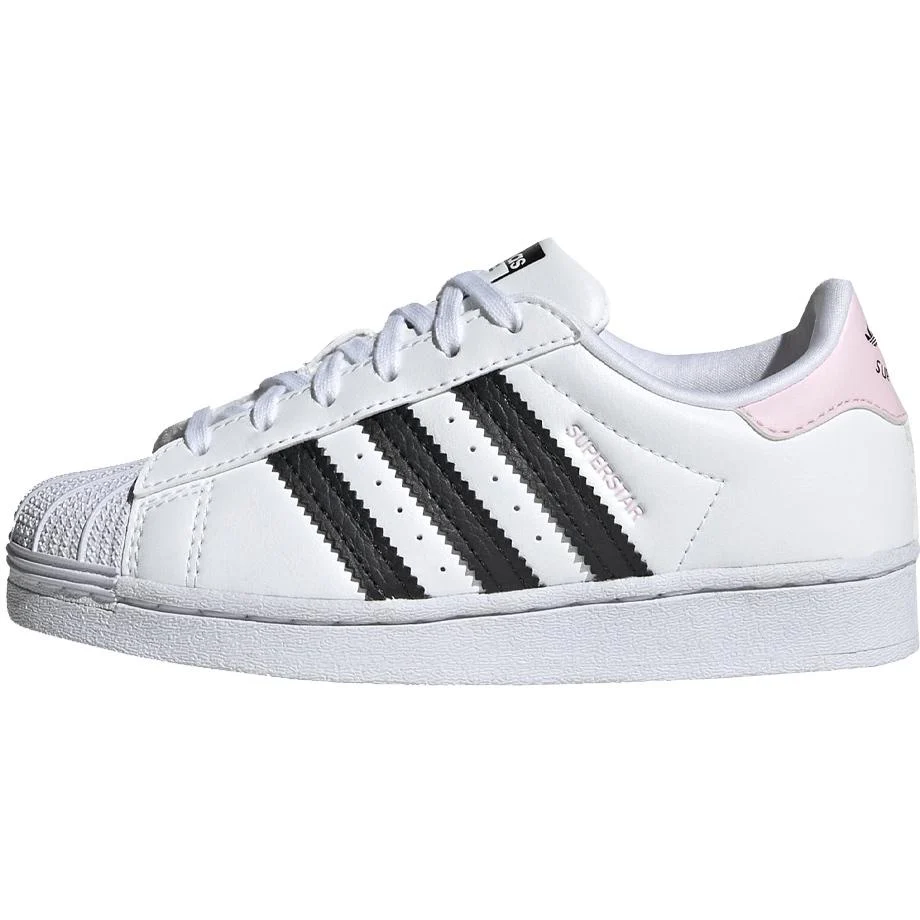 Sneaker BIMBA – Modello: SNEAKERS SUPERSTAR – Colore: WHITE/CORE BLACK/CLEAR PINK Un modello intramontabile che è una vera e propria dichiarazione di stile. Le iconiche 3 strisce e il rinforzo sul tallone sono disponibili in una varietà di nuove colorazioni, mentre la soletta sagomata avvolge il piede in un morbido abbraccio. La tomaia è composta per almeno il 50% da un mix di materiali riciclati. Questo prodotto è solo una delle nostre azioni per contrastare l`inquinamento causato dai rifiuti plastici.