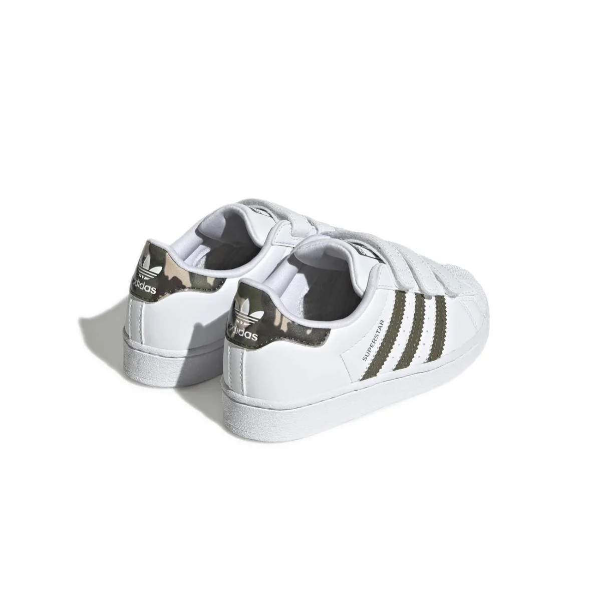 Sneakers KIDS – Modello: SUPERSTAR – Colore: BIANCO CAMO Queste adidas Superstar per bambini hanno un aspetto simpatico e unico con dettagli camo. Un design slip-on facile e una soletta stampata garantiscono comodità . L`iconica punta a conchiglia e le tre strisce seghettate la rendono inconfondibile. Realizzata con una serie di materiali riciclati, questa tomaia presenta almeno il 50% di contenuto riciclato.